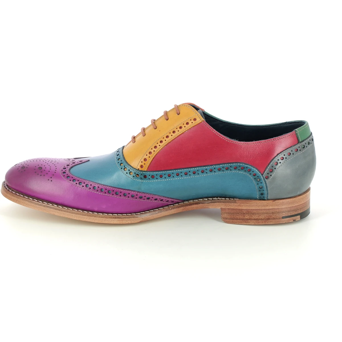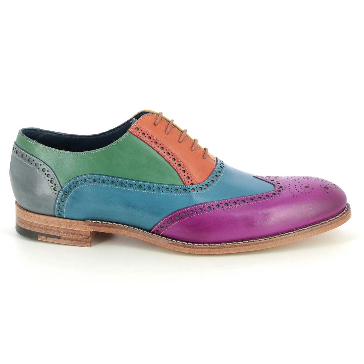 Barker Shoes have created these show-stopping men’s brogues offering exceptional craftsmanship and quality. The Valiant brogues feature a multi-coloured fine leather upper hand painted in natural dyes of tan, purple, blue, green, yellow and grey. The leather soles and footbed offers premium materials in the entire construction of these men’s brogues. Part of the Creative Collection, these men’s Barker Valiant brogues are available in a standard F-width fitting and are formed using the last shape 446.
