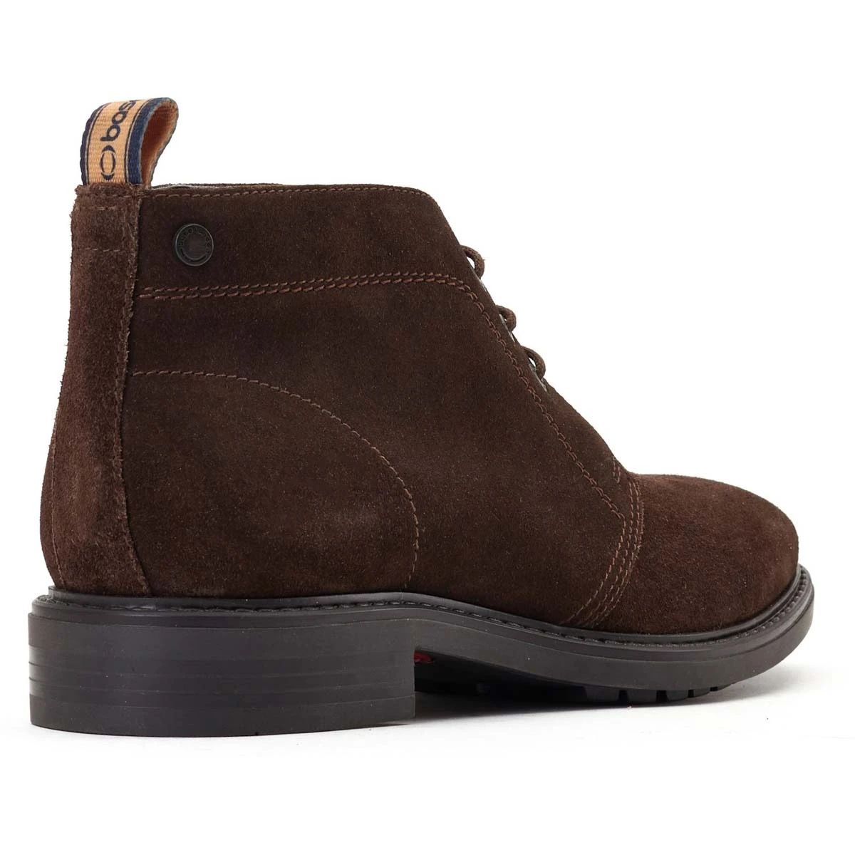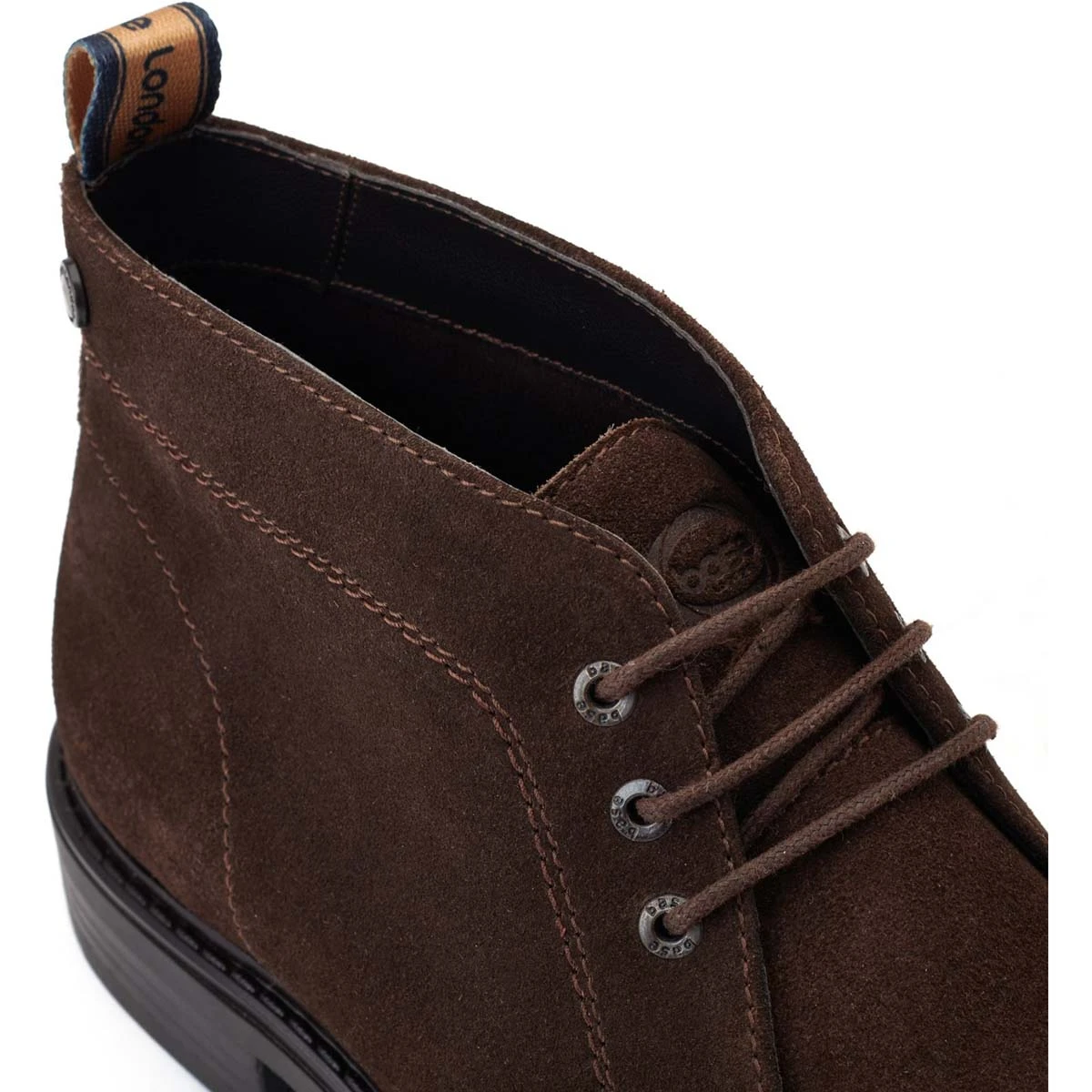 Base London Kilby men’s brown chukka boots have a soft suede leather upper in dark brown. The short laces offer an adjustable fastening whilst the finger pull tab offers easy slip on and off comfort.