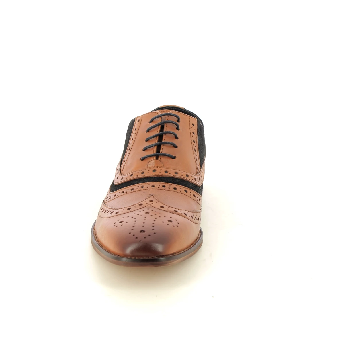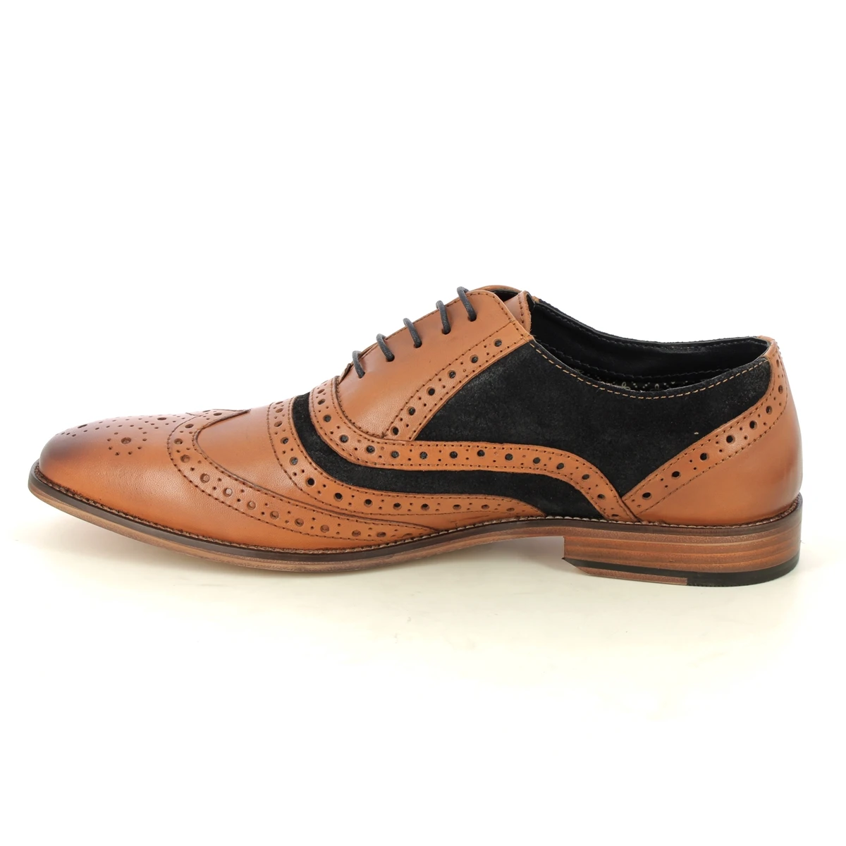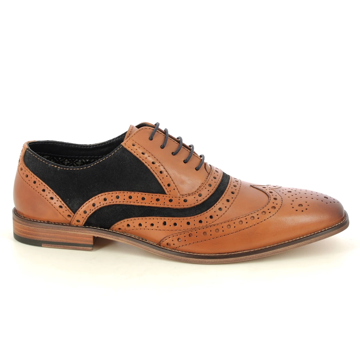 These men’s tan leather brogues are smart and excellent value for money. These men’s leather smart shoes have a tan leather upper with wingtip trim and punch-hole details and burnishing on the toe. There are navy suede panels for a contemporary look and the short laces offer a secure fastening.