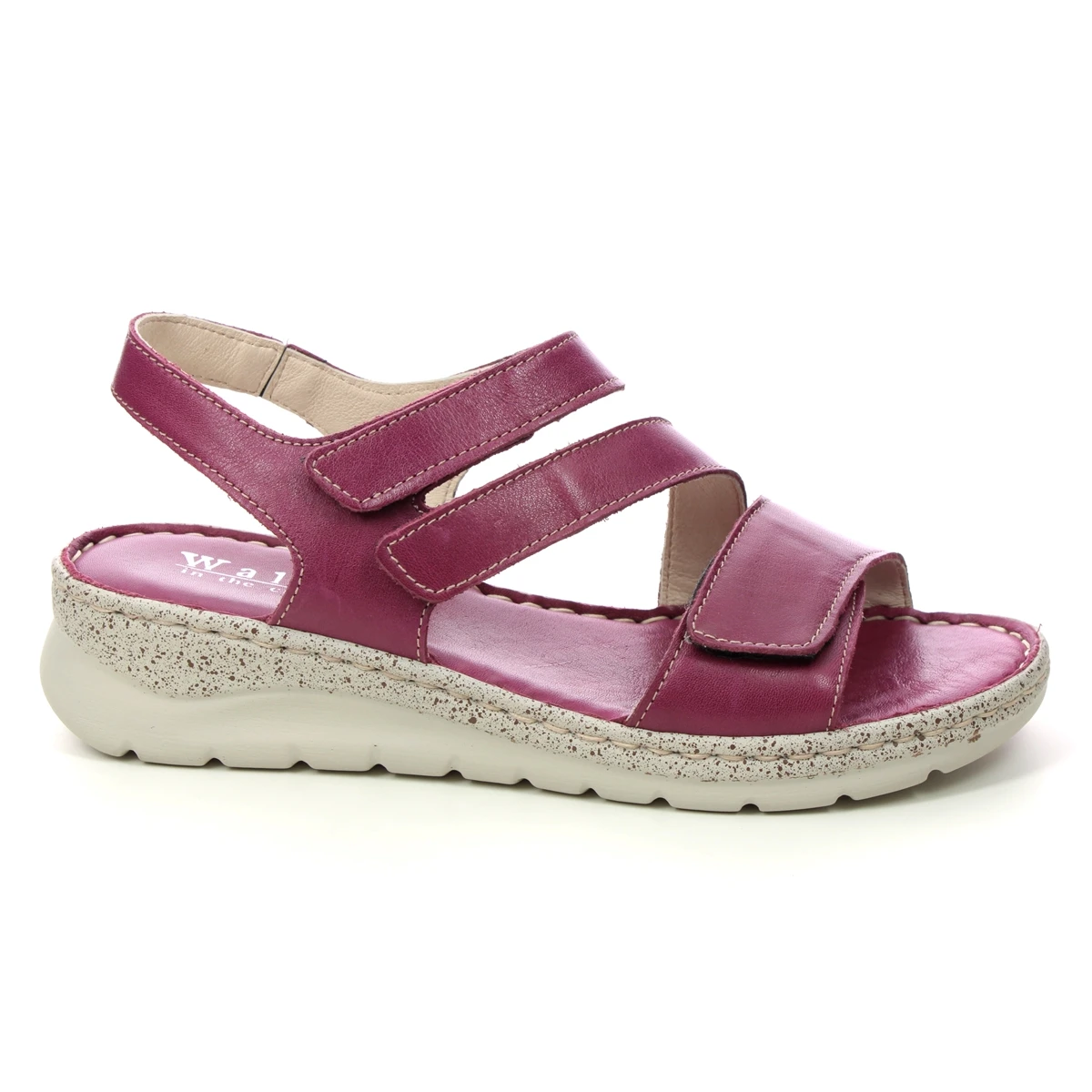 The Walk in the City Tramba Wide women’s purple sandals are wide fitting and have three adjustable velcro straps.