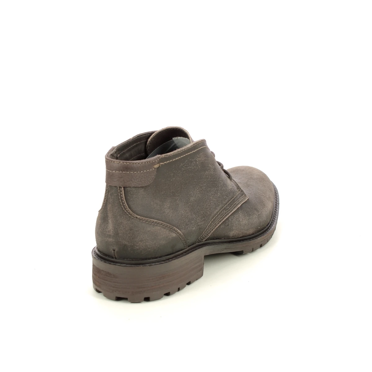 These men’s Chukka boots have a grey leather upper with a distressed finish and low cuff.
