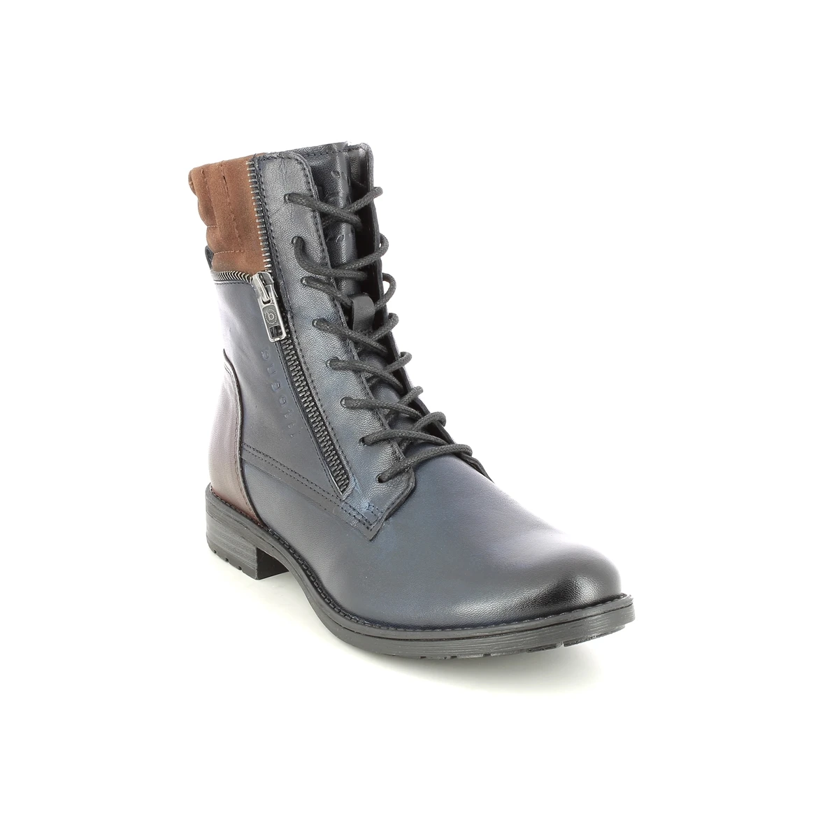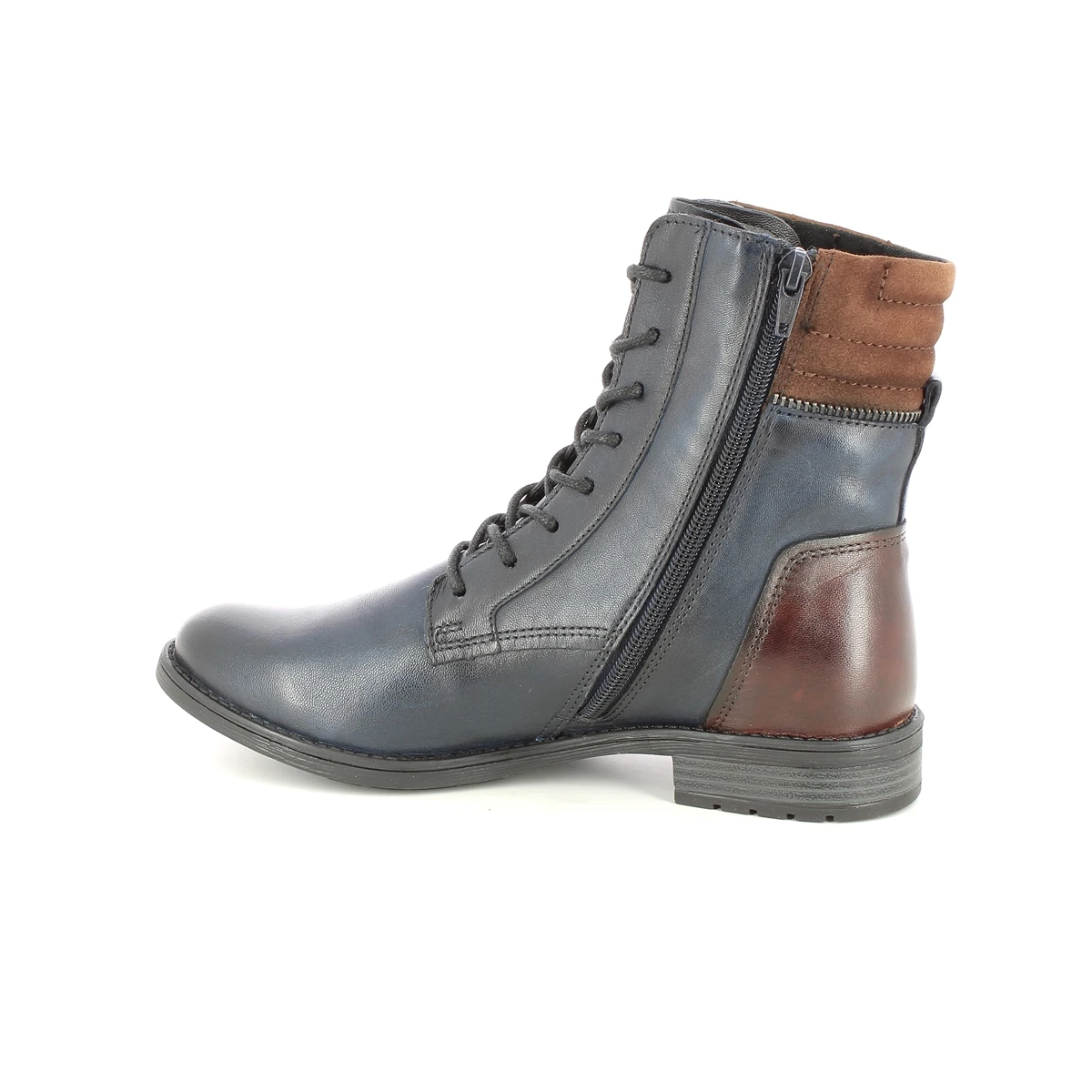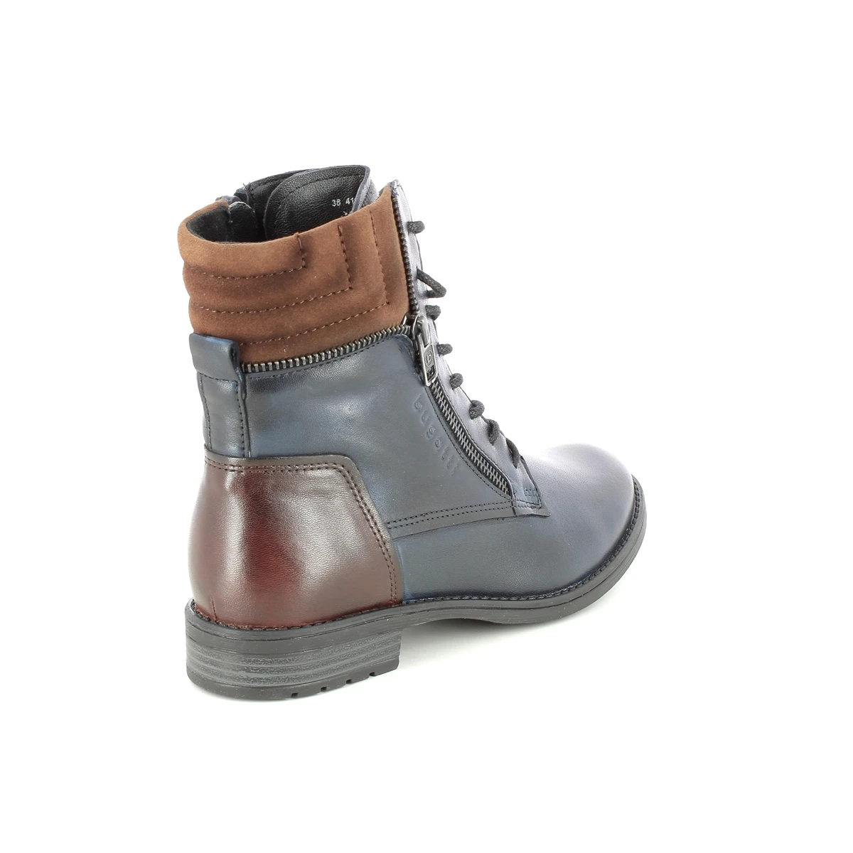 Bugatti Ronja Zip navy tan lace up boots are a classy option featuring a smooth leather upper quick entry side zip and comfortable soft lining. A cushioned insole offers wonderful comfort during wear and the versatile shade of navy means they can be worn with a variety of colours and added burnished details make this a little bit special.