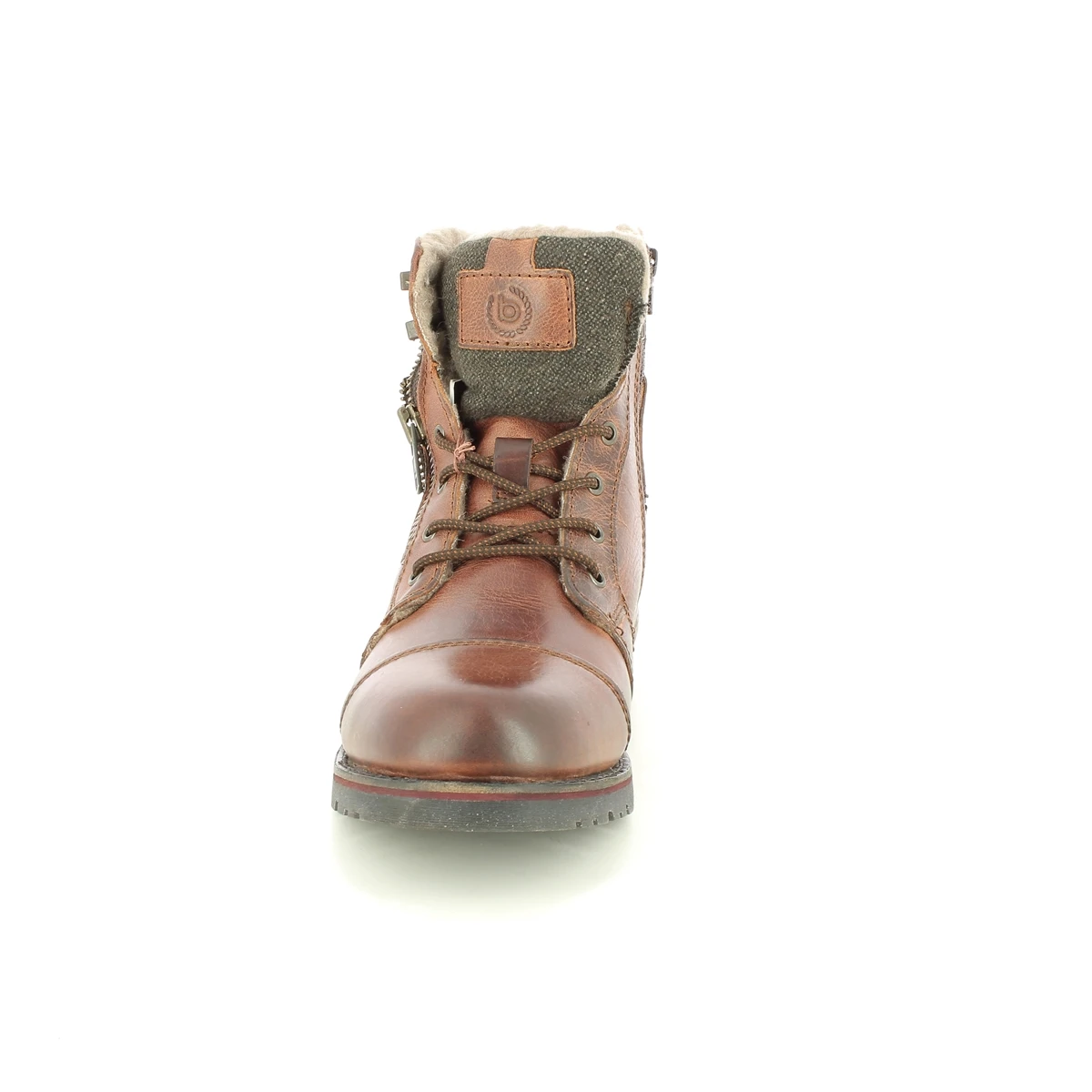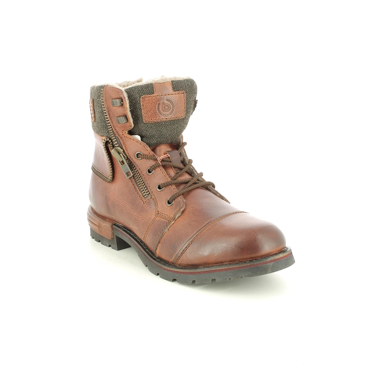 The Bugatti 32161150-6000 SENTRA CUFF mens winter boots feature a tan leather upper with a textile cuff for a casual look. The metal hardware is offset by the rugged laces and the cleated outsole maintains the work boot style look. Fleecy lining and a cushioned footbed ensure comfort with every step.