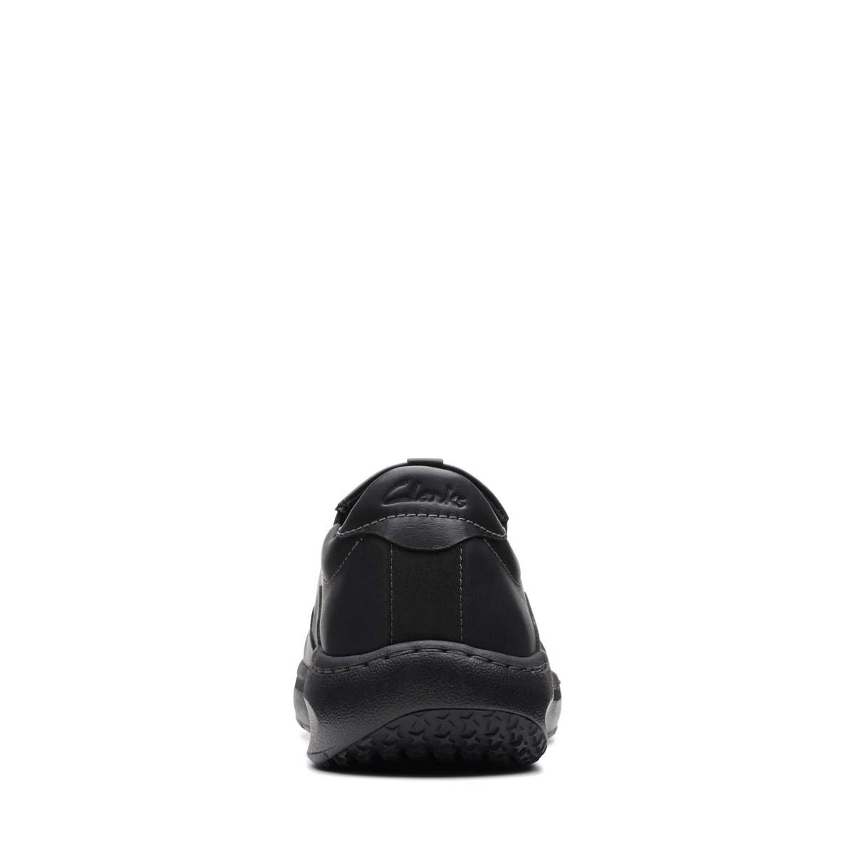 The Clarkspro Step men’s black slip on shoes are comfortable and casual. These men’s H fit Clarks shoes are wide fitting, easy to slip on and have a smooth, breathable leather upper.