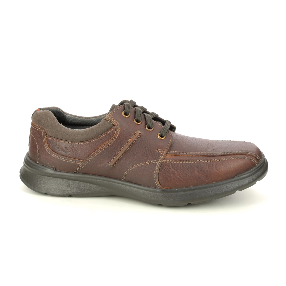 The Clarks Cotrell Walk mens wide fit shoes in brown leather are casual and comfortable. These H fit mens shoes have a grained leather upper which is breathable and flexible. The soft textile lining is padded around the collar and these mens lacing shoes are easy and secure to fasten.