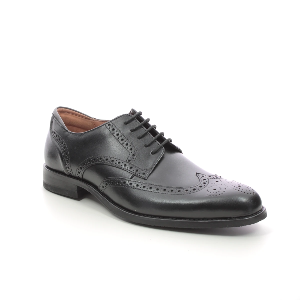 The Clarks Craftarlo Limit men’s black leather brogues are contemporary. These men’s black brogues have a smooth leather upper with classic brogue punch-hole details on the quarters and wing cap. Short laces offer an adjustable fastening whilst the leather lining and footbed offer superb comfort all around.