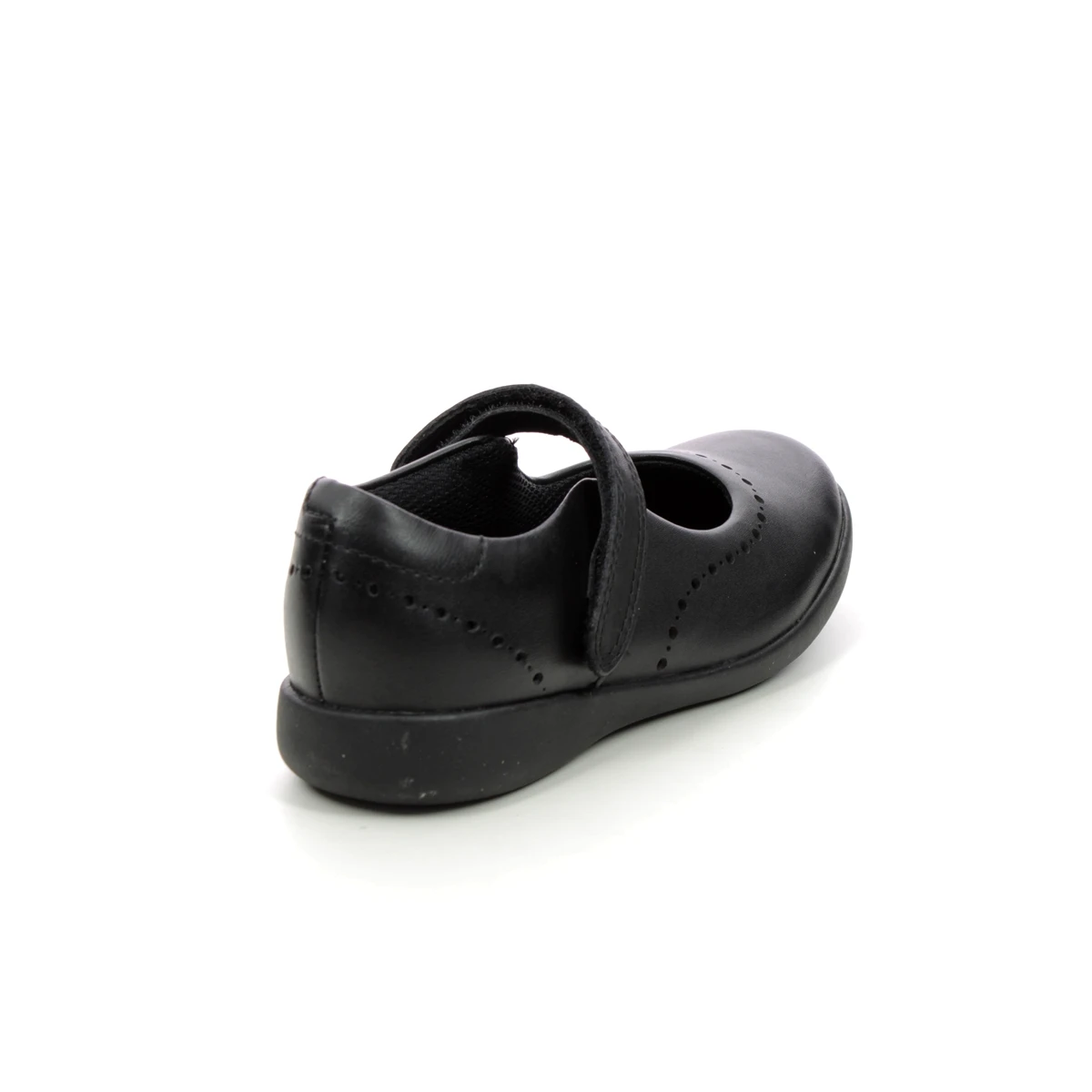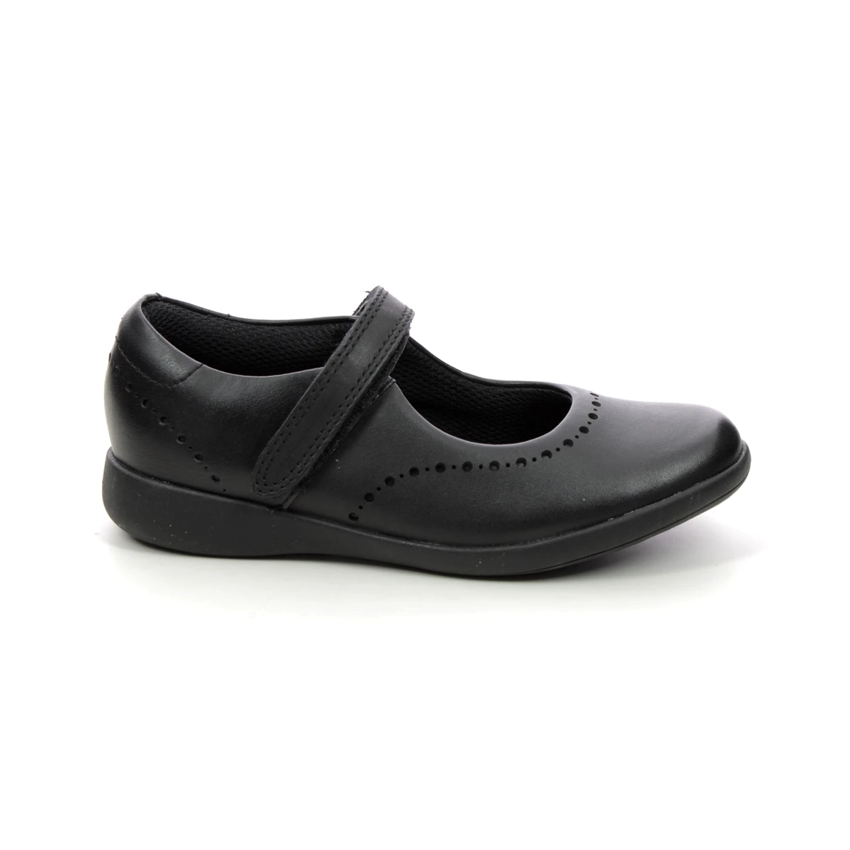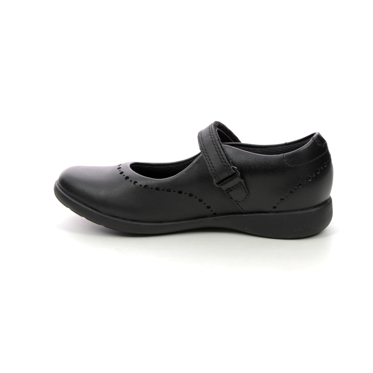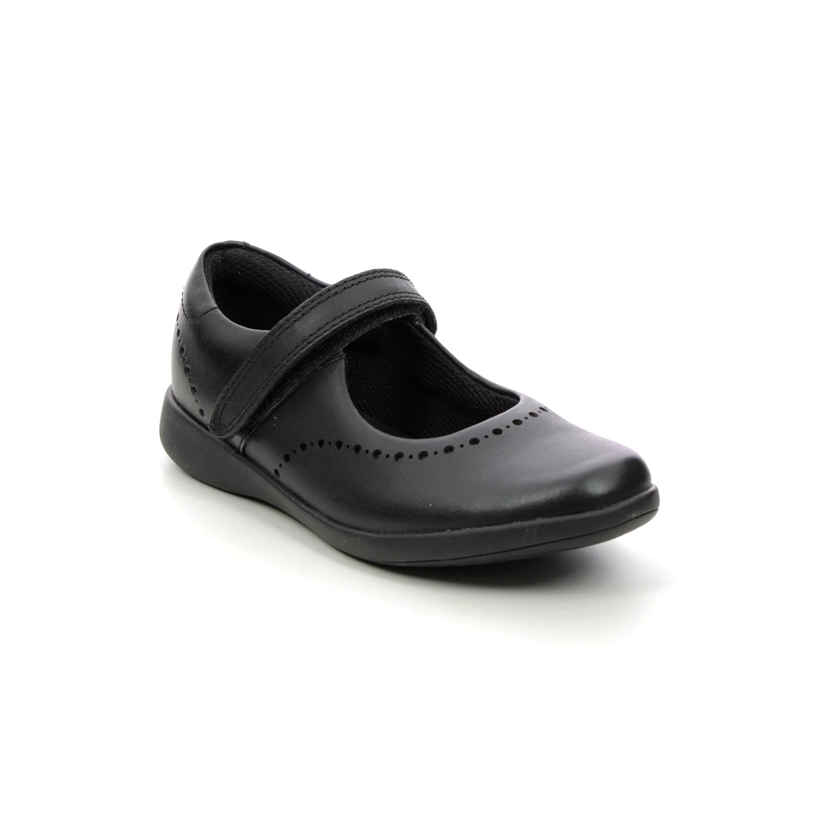 For this season Clarks have brought us Etch Craft 4310-15E in black leather with Velcro fastening a classic Clarks girls school shoes perfect for running about in the playground. The classic bar strap design with a simple a riptape fastening features brogue detailing making these shoes smart and suitable for school wear. Perfect for running about with friends these shoes use a durable and lightweight rubber sole that has flex grooves that allow for maximum movement of the foot whilst staying comfortable. The Clarks school shoes are finished with an eco foam lined fabric sock keeping feet fresh and comfortable throughout the day. These shoes are also available in an F G and H fit. We offer a professional fitting service for childrens feet in store to ensure the perfect fit. You can buy your Clarks school shoes online and in store with Begg Shoes