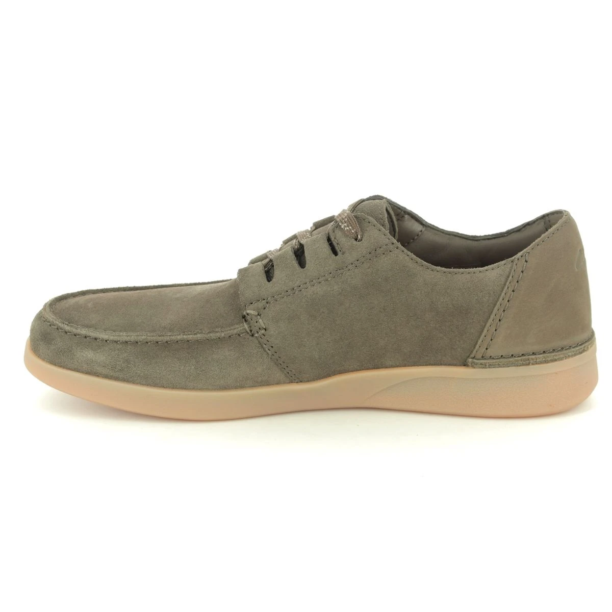 The Clarks 540657G OAKLAND WALK mens casual shoes are a comfy option. The olive green Clarks shoes feature a nubuck leather upper with apron stitching for a structured and flexible fit. The lace up front offers a secure and adjsutable fastening whilst the soft lining offers a comfortable fit. The padded footbed ensures comfort underfoot whilst the rubber lining offers improved traction.