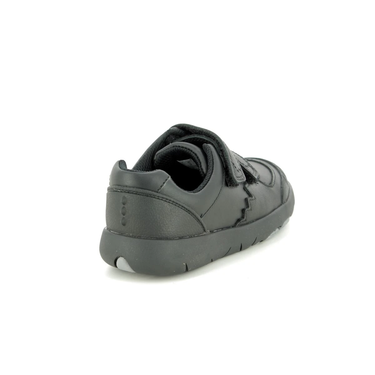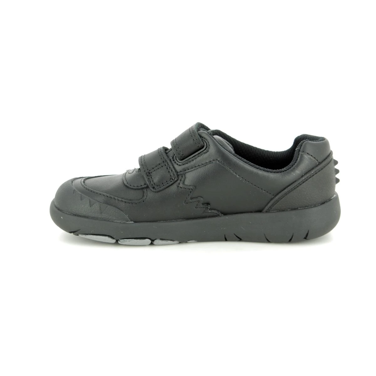 This this season Clarks bring us the Rex Pace K 4704-46F in black leather a boys shoe with Velcro fastenings. These Clarks boys shoes are crafted from black leather and are ideal for a pair of school shoes. Spine detailing on the heel and teeth marks on the protective toe bumpers give this shoe extra durability perfect for running around the playground. The rubber sole is also extremely durable and provides grip when needed most. Kids will love these dinosaur themed school shoes with a double riptape fastenings for easy on and off they can slip them on and go. These shoes also feature a padded collar to enhance the support this shoe gives whilst infused linings keep little feet fresh all day. We offer a professional fitting service for childrens feet in store to ensure the perfect fit. You can buy your Clarks shoes online and in store with Begg Shoes