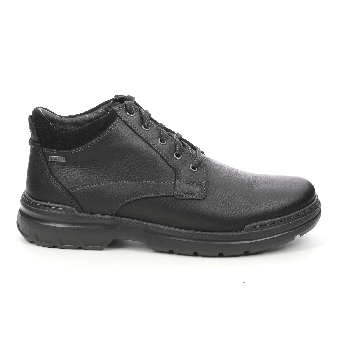 Clarks 612568H ROCKIE 2 UP GTX mens boots are smart and practical. These mens waterproof boots feature a black leather upper and Gore-tex membrane which is guaranteed waterproof and breathable. The lace up front ensures a secure and adjustable fastening whilst the leather lining and footbed ensures superb comfort underfoot. These mens Clarks boots have an EVA sole unit with gentle cleating for improved traction””””