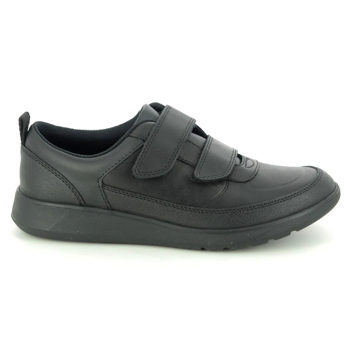 These Clarks Scape Flare Y G fit boys’ school shoes are smart and comfy. The velcro school shoes have a breathable black leather upper with an Agion antimicrobial lining to help keep feet fresh.
