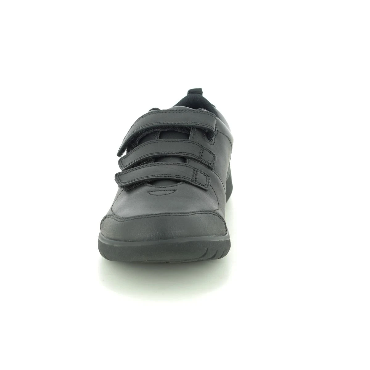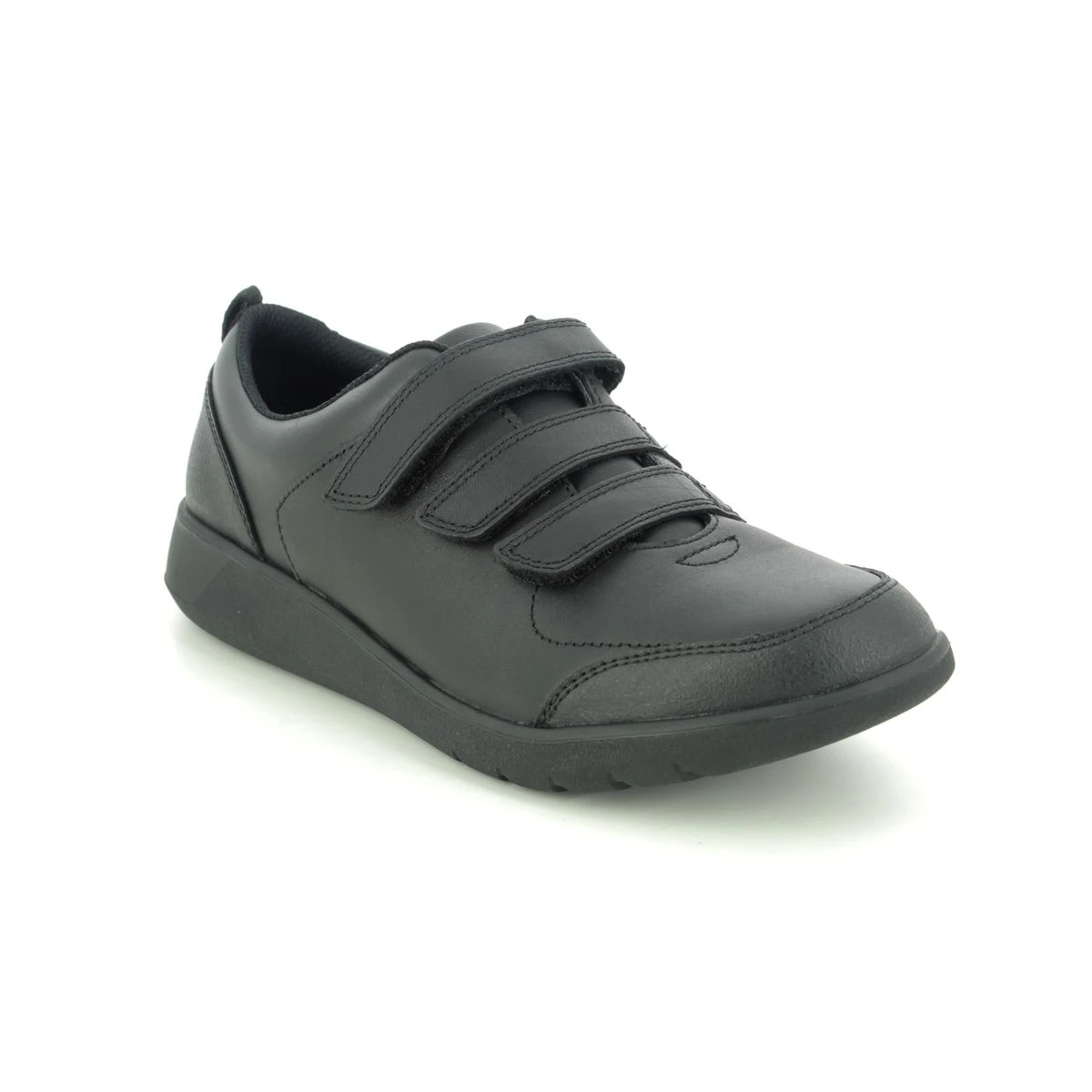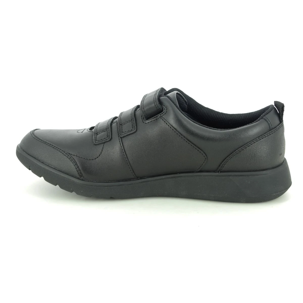Clarks 4558-16F SCAPE SKY Y boys Velcro school shoes are comfy and practical. The black leather upper ensures a comfy fit from the very first moment whilst the three Velcro straps offer an easy and quick fastening. The Clarks Velcro school shoes have a padded collar and tongue to keep feet snug whilst the soft Agion lining helps to keep feet cool and comfortable – and fend off unwanted odours. The flexible sole unit offers freedom of movement and is supportive for long days on their feet. Begg Shoes are an official Clarks school shoes stockist visit us in store for our professional childrens shoe fitting service or browse our full range of Clarks school shoes online.