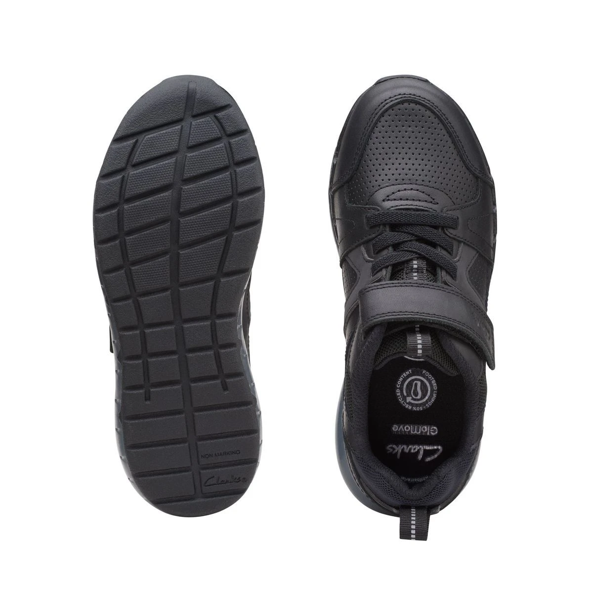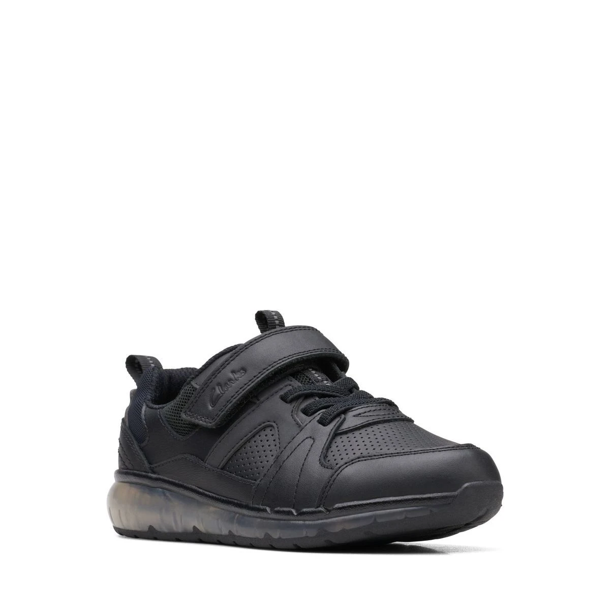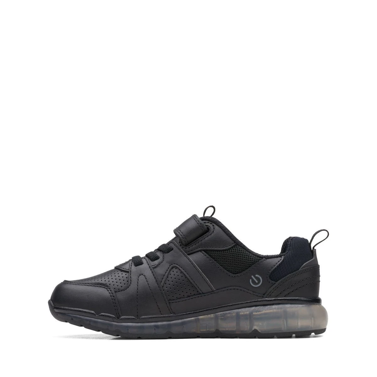 The Clarks Spark Beam K boys black trainers are comfortable and fun. These light up school shoes have a secure and quick fastening.