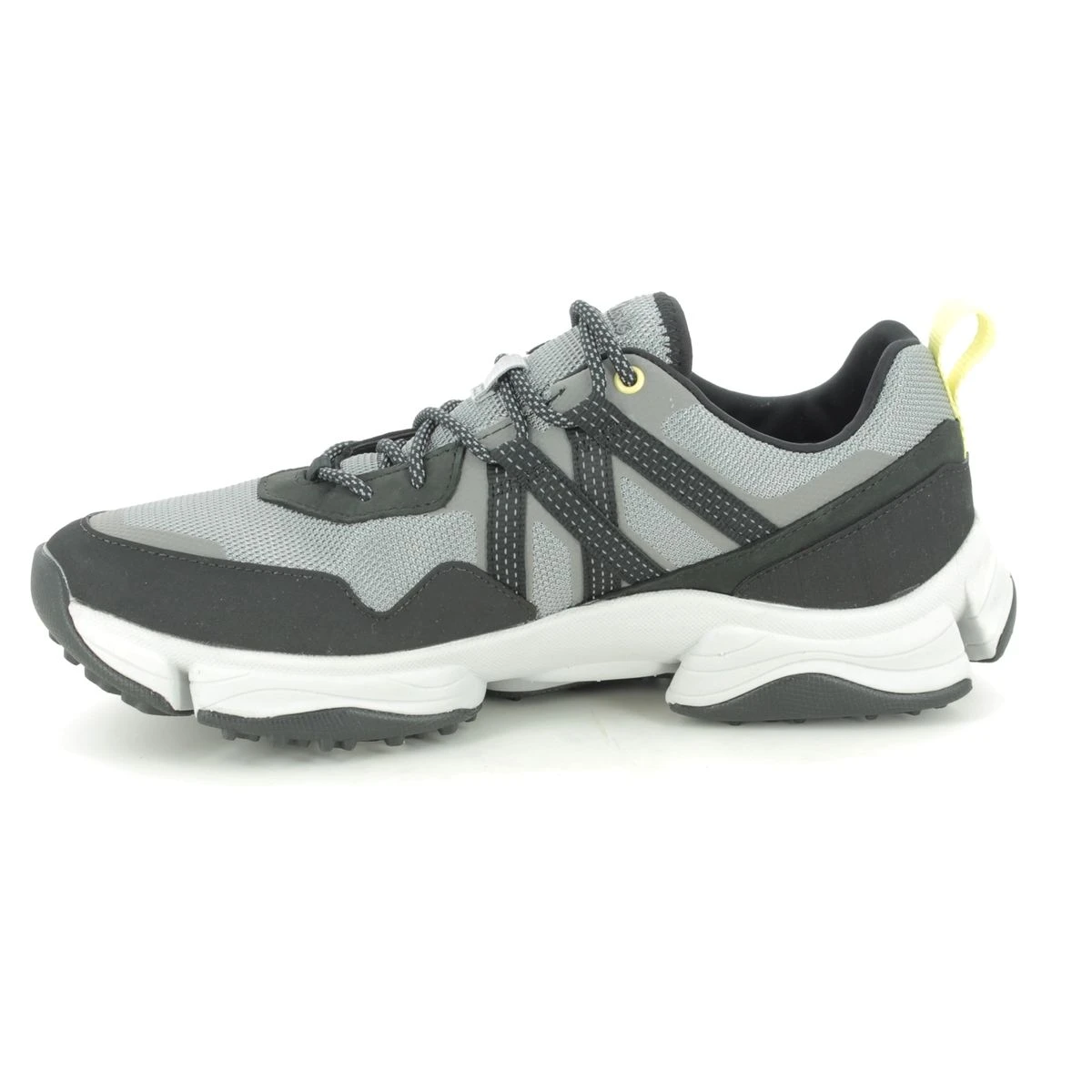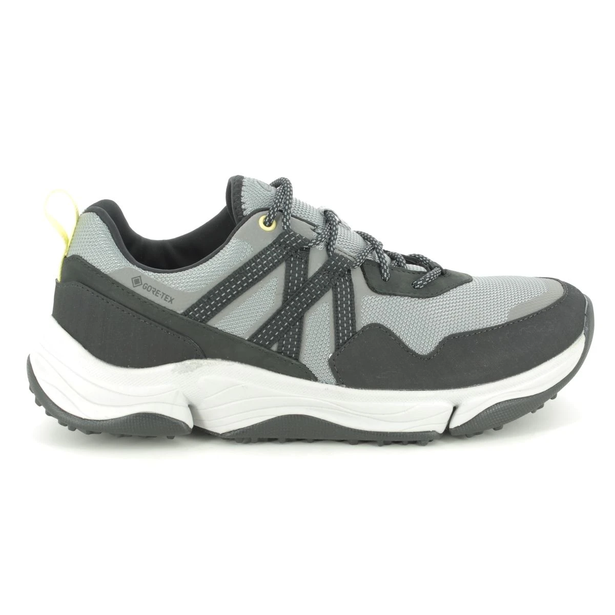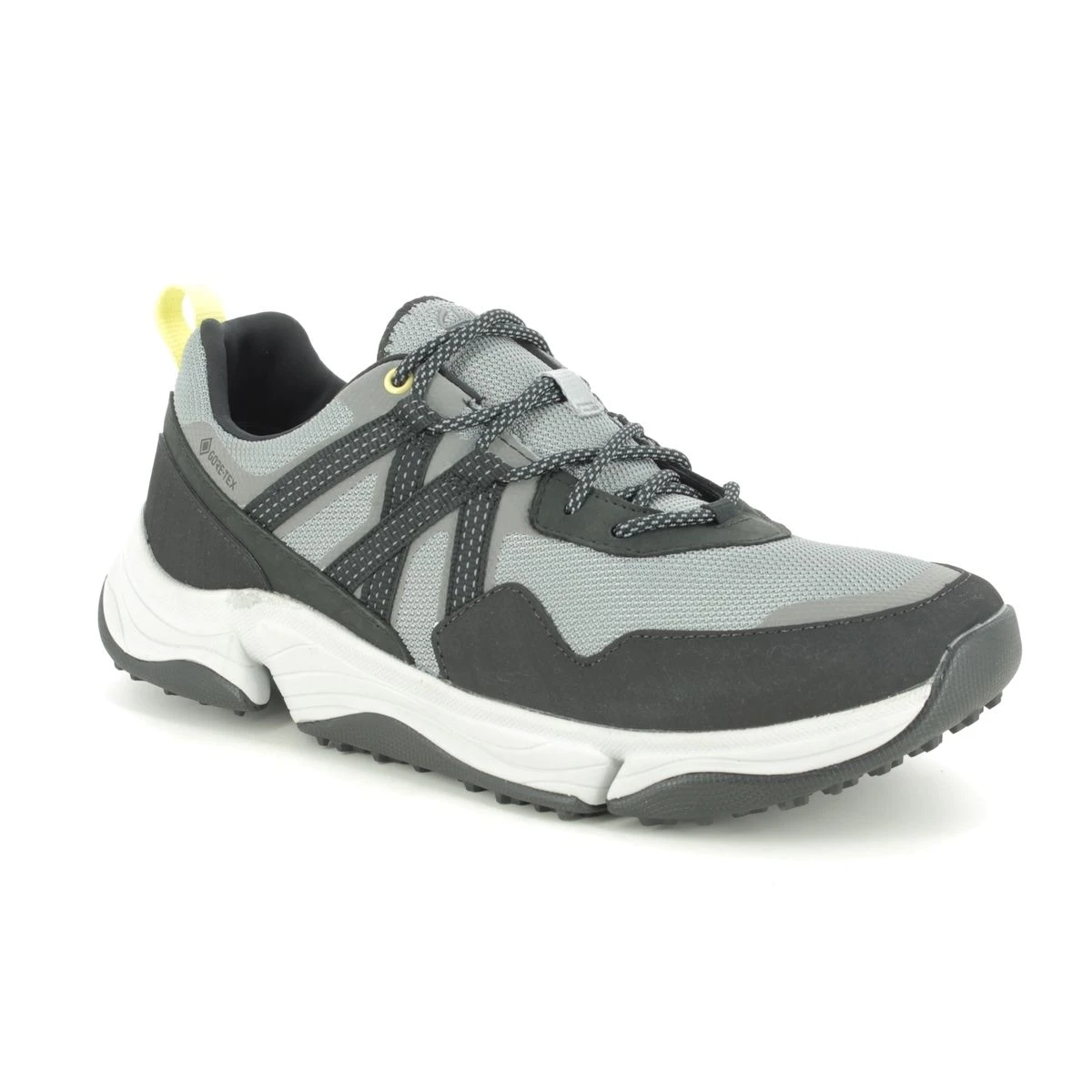 Clarks 566357G TRIPATH TREK GTX mens walking shoes are contemporary and practical. The Clarks mens Gore Tex shoes have a grey and black upper made from mesh fabric with man-made overlays. The mens waterproof shoes have a lace up front and the Gore Tex membrane ensures your feet are kept dry and comfortable. There is grooving on the rubber outsole for improved traction across a variety of terrains.