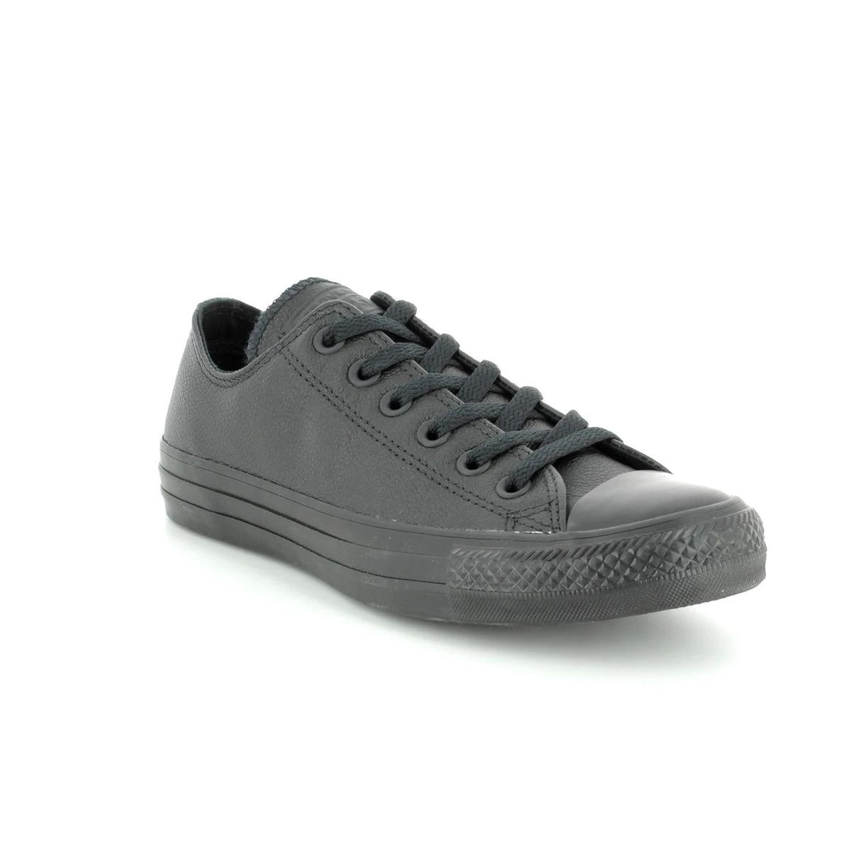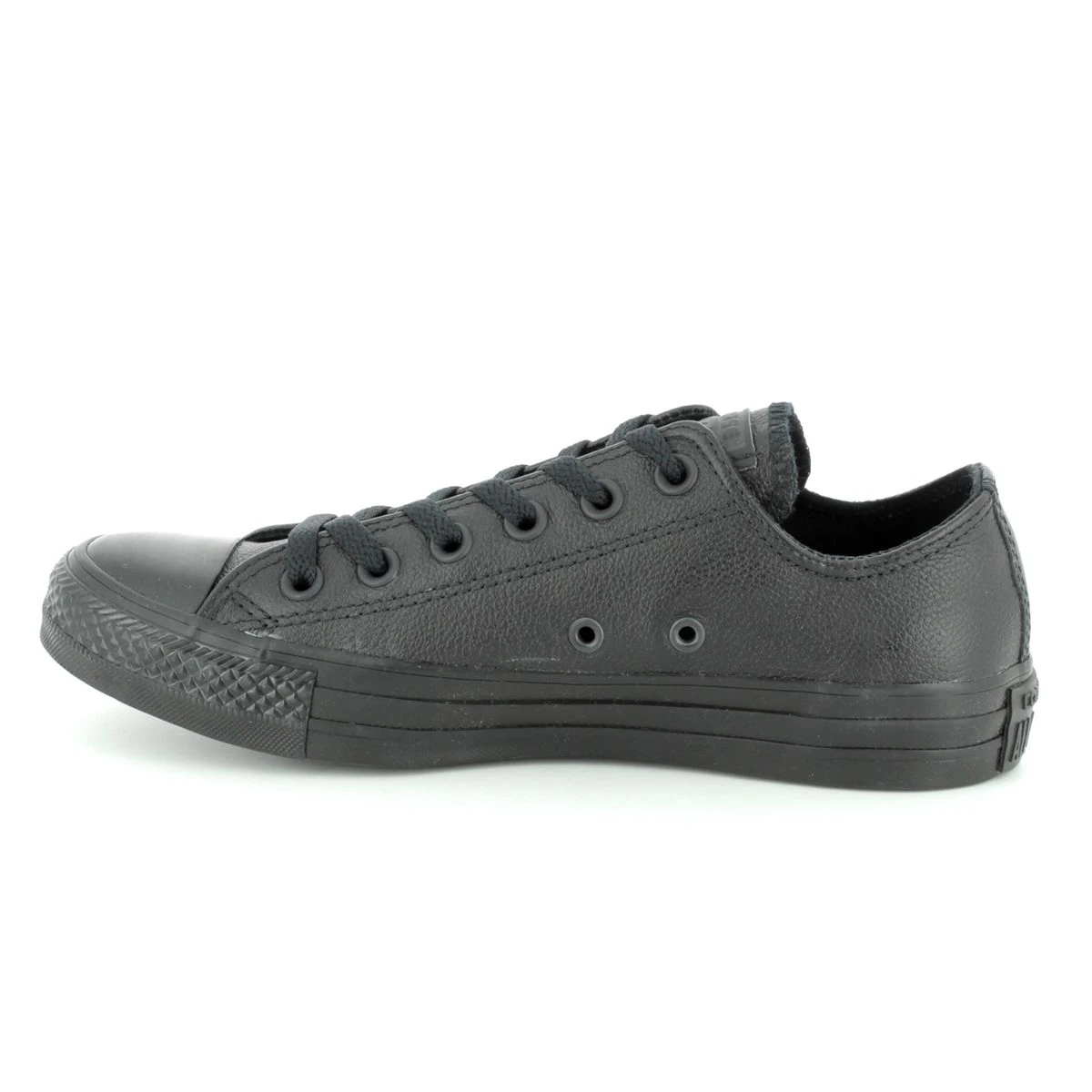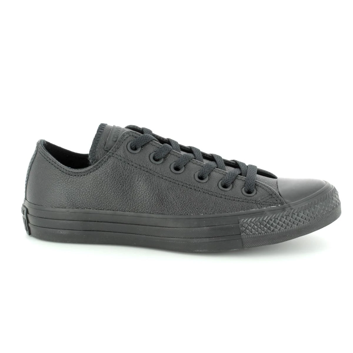 Converse bring you their Chuck Taylor All Star in black leather. The rubber grip sole brushed metal eyelets padded footbed smooth upper and reinforced rubber toe cap finish off this must have converse trainer.