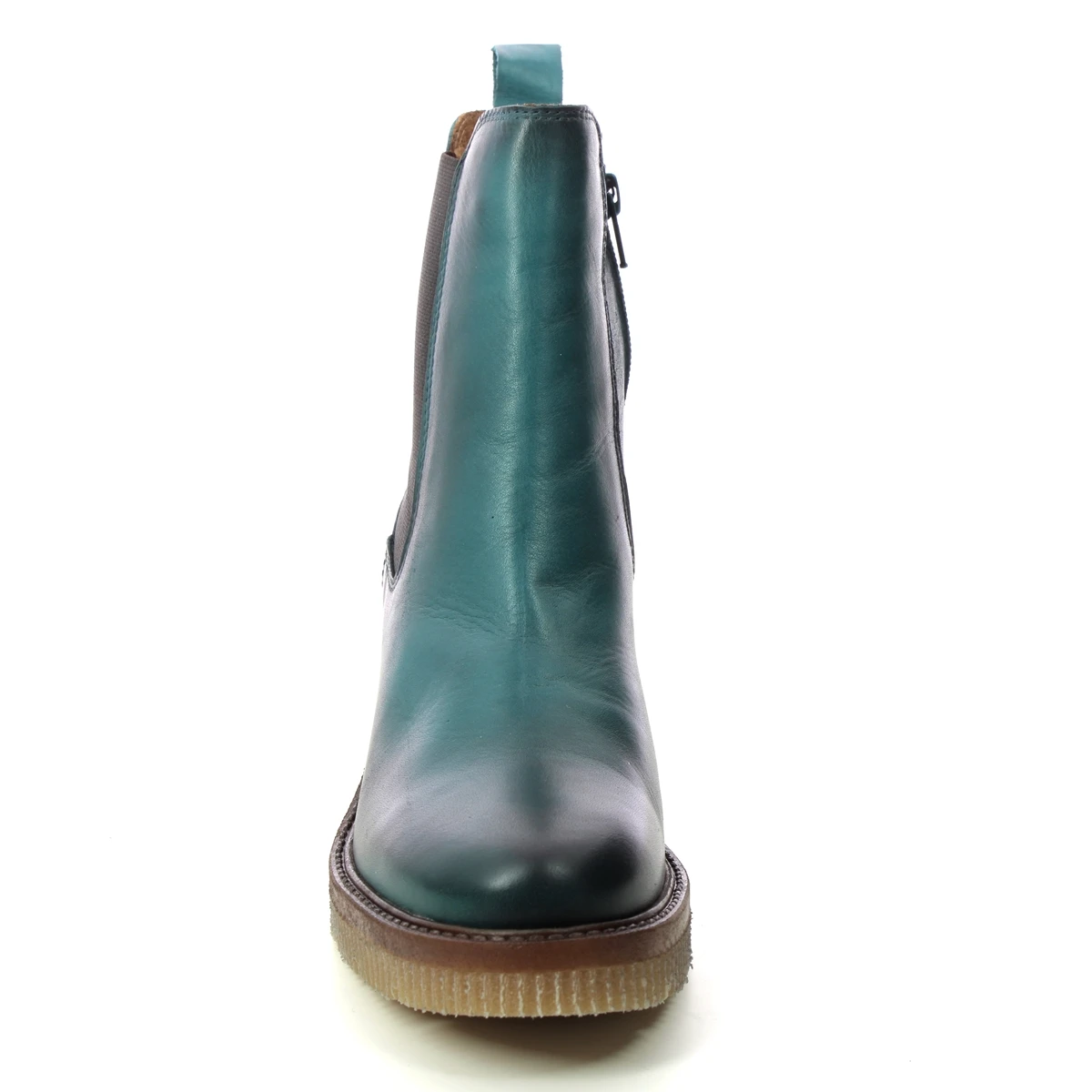 The Creator Blu Yoss women’s turquoise wedge boots have a premium leather upper in a stunning shade. These women’s turquoise ankle boots have stretchy elastic side panels and an interior side zip for easy fastening.