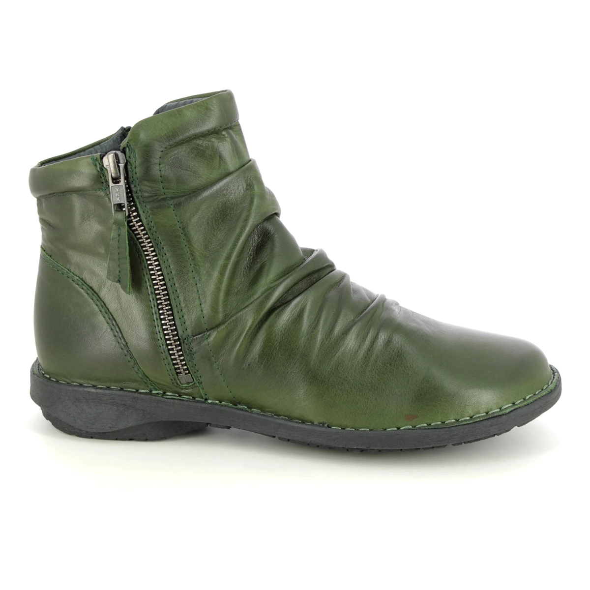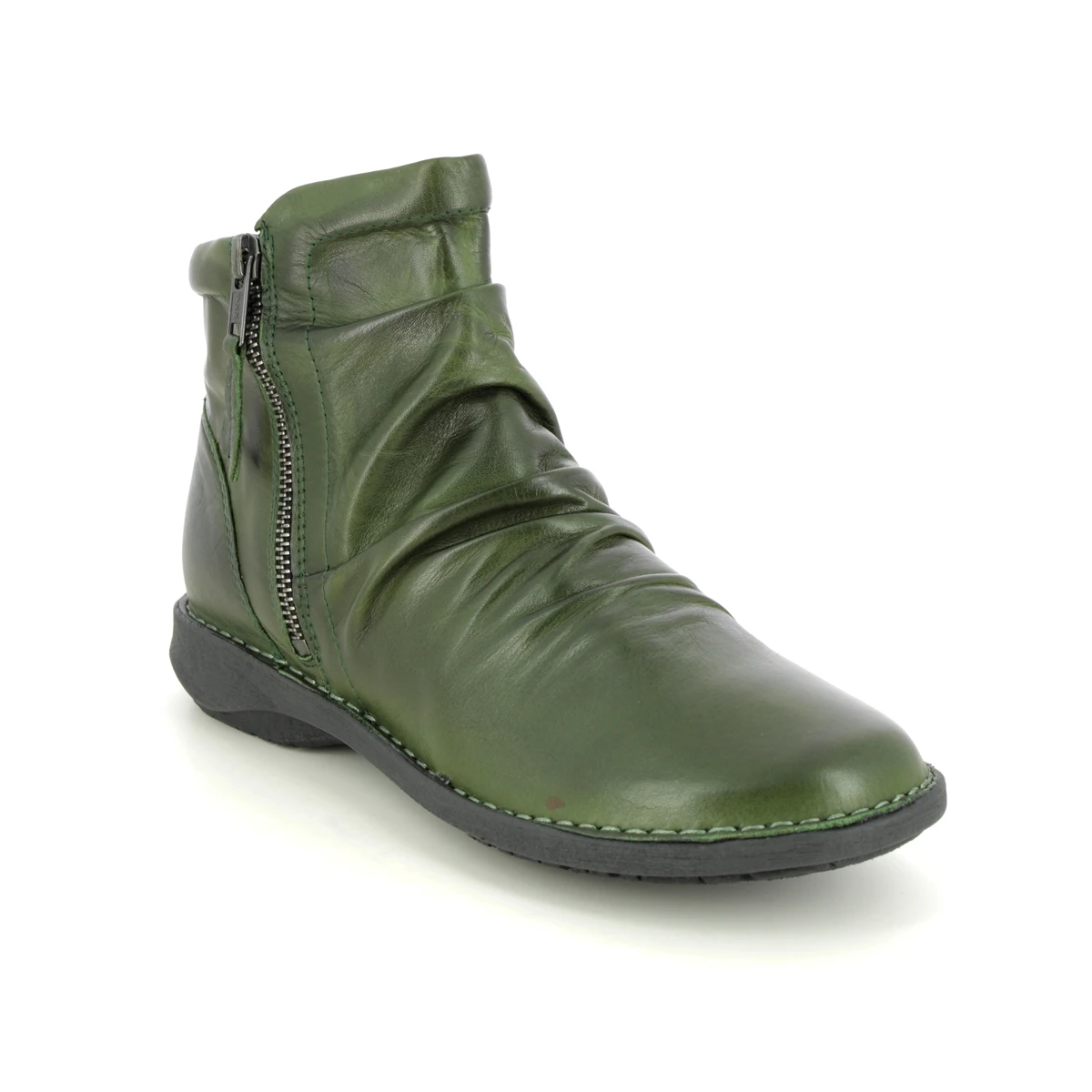 The Creator Suffle womens green ankle boots combine premium quality with superb comfort. These womens leather ankle boots are back for another season in an on-trend green shade. The buttery soft leather upper has been ruched for a flattering effect and is flexible and breathable too There are two zips on each side to make foot entry even easier.