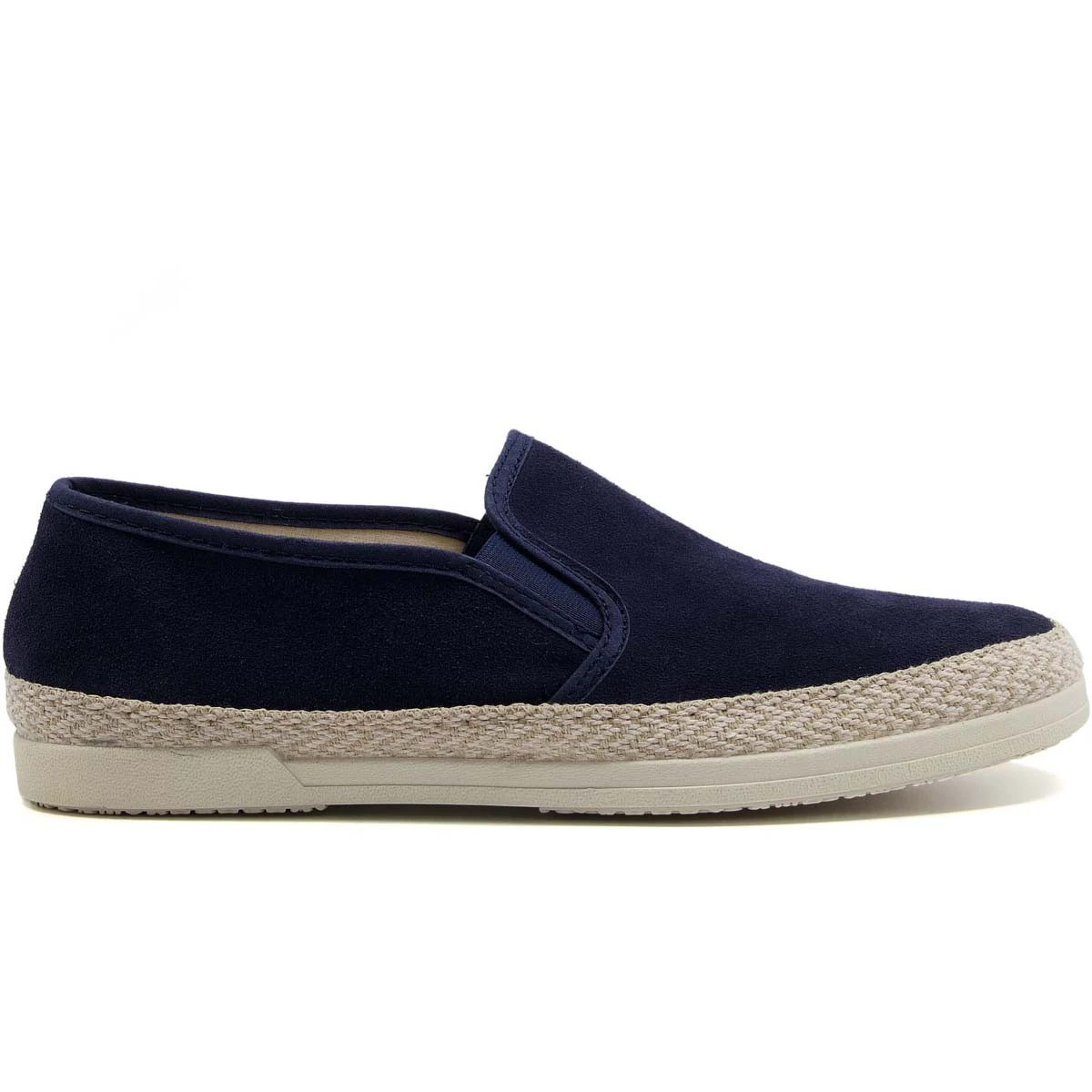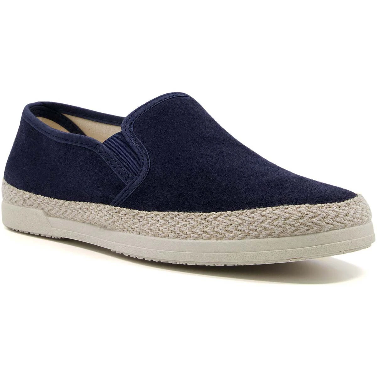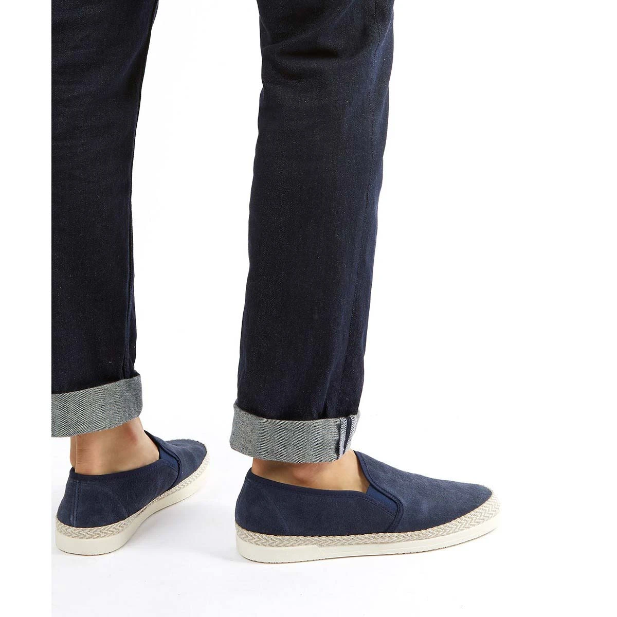 Dune London Francisco men’s navy slip-on shoe are lightweight and flexible. These men’s navy espadrilles have a soft suede upper with elastic gussets for easy slip on fit.