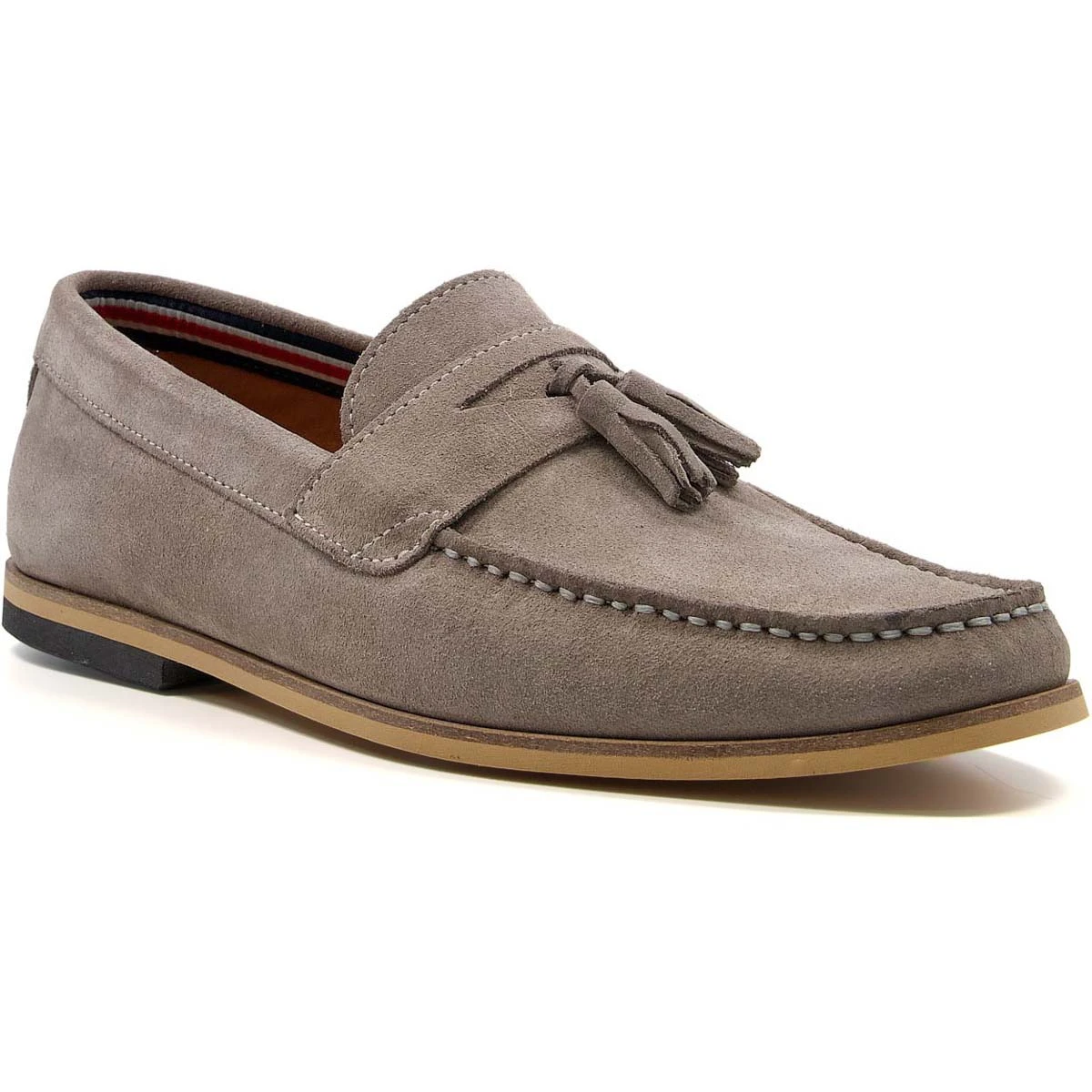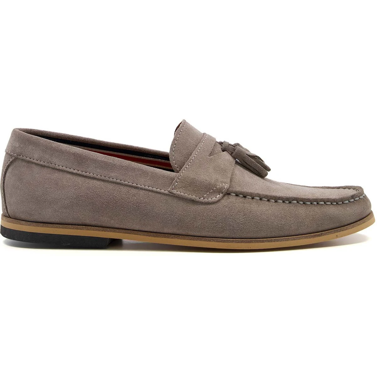 The Dune London Bart men’s grey slip-on shoes combine casual style with lightweight comfort. These men’s grey loafers have a soft suede leather upper with apron stitching and padded footbed.