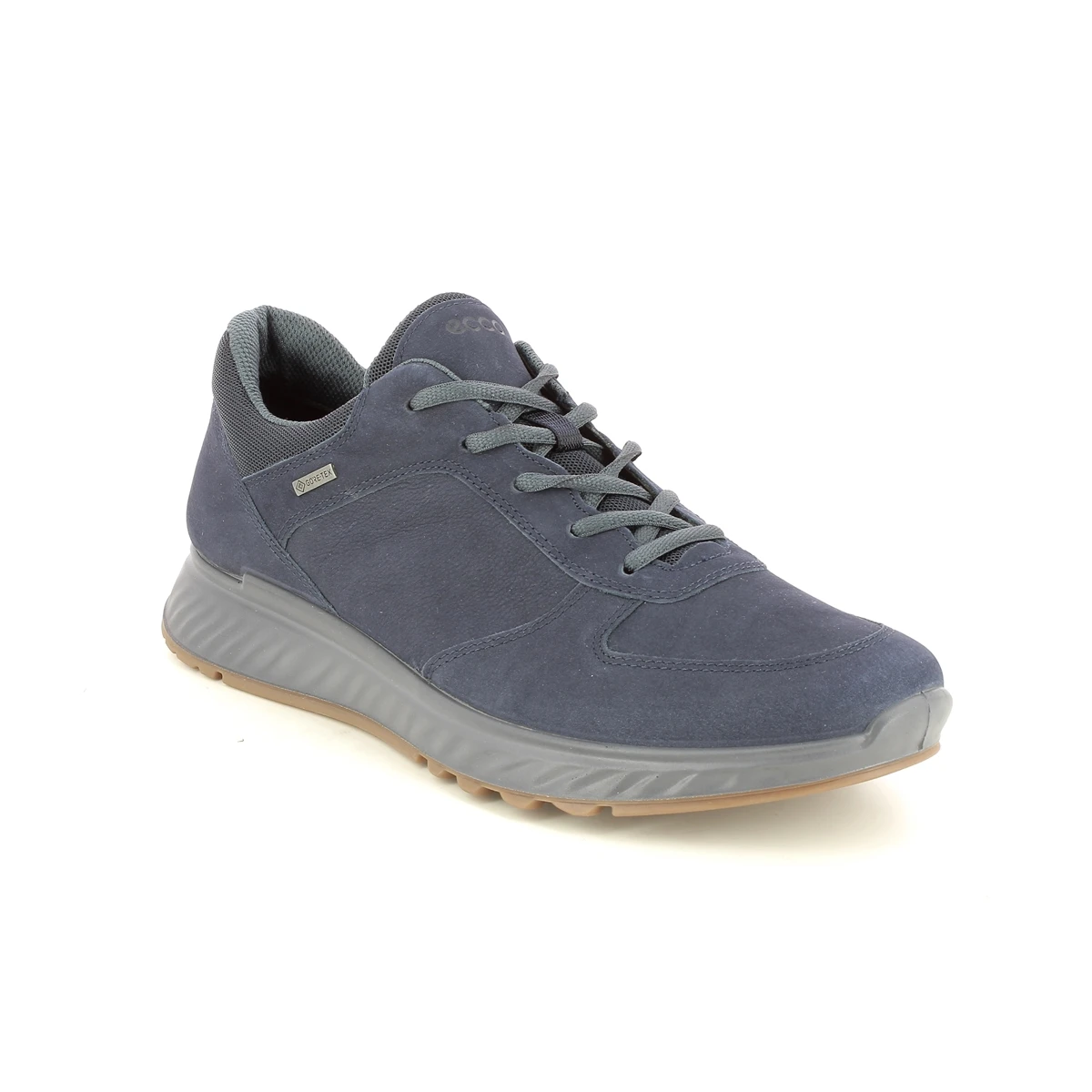 ECCO EXOSTRIDE MENS GORE TEX offers the ultimate in premium mens trainers. The Exostride mens navy trainers have been crafted using soft yet durable Yak nubuck leather for a softter casual styling. Built on an anatomical last that follows the natural shape of the foot for enhanced support and stability and using ECCOs Fluidform technology these mens trainers are lightweight flexible and shock absorbing. This Exostride style has the benefit of being lined with Gore Tex making them both waterproof and breathable – helping to keep your feet comfortable and dry whatever the weather conditions.