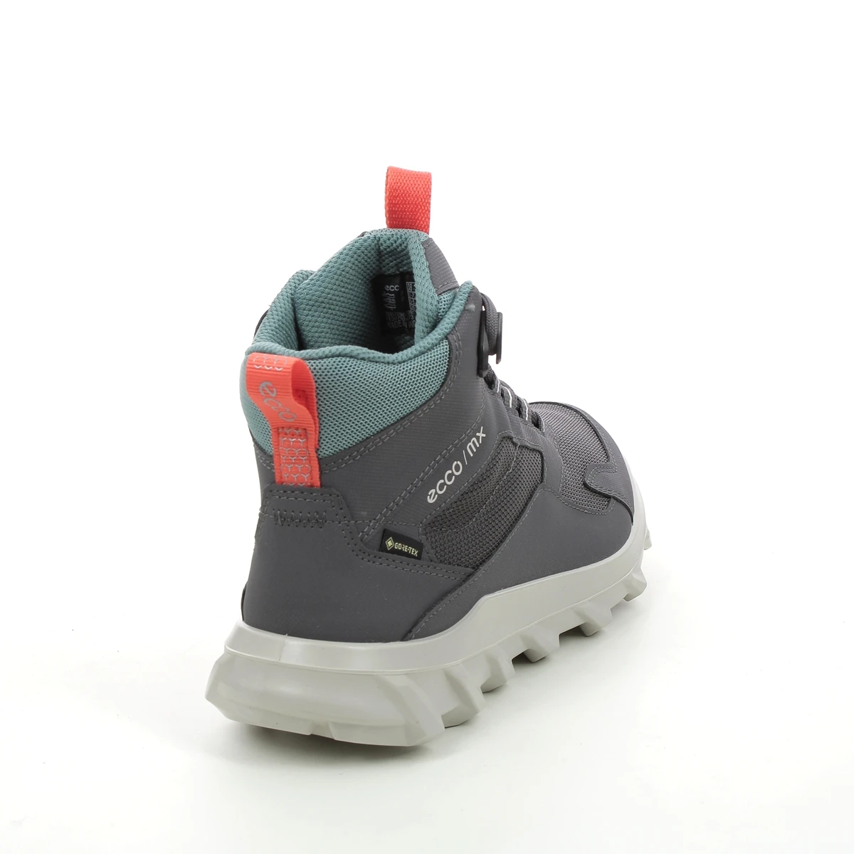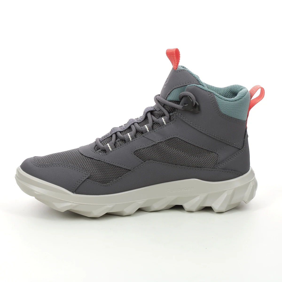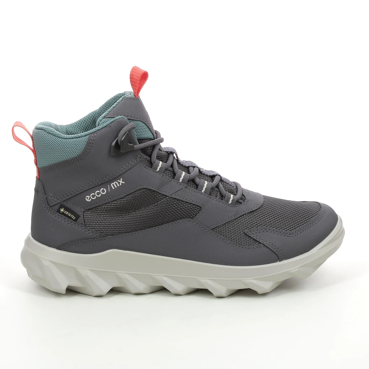 The womens MX boot in grey from Ecco offers an ideal lightweight walking boot with a guaranteed waterproof Gore Tex lining for all day comfort on the trail. With its rugged sole the MX Womens boot is ready for action on a wide range of surfaces with robust ankle support built in. Ideal for light hill walking or even dog walking this boot is soft enough that it can be comfortably worn for a wide range of everyday purposes. The sole combines hard wearing and lightweight materials with upgraded tacky rubber inserts for added grip on the trail.