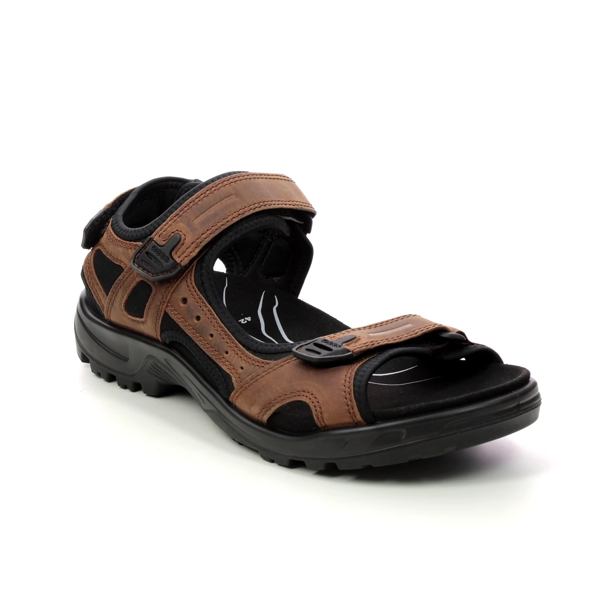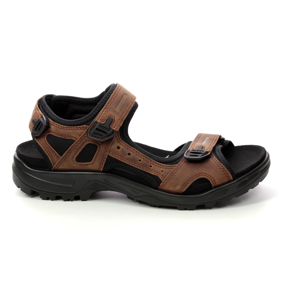 Ecco Offroad Mens brown nubuck walking sandals are ideal for exploring the great outdoors in the warmer months. These men’s walking sandals have a nubuck leather upper with black lining made of stretchy, padded neoprene for superior comfort. There are three velcro straps, offering a personalised fit.