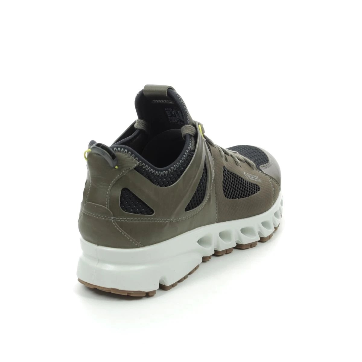 These comfortable mens khaki leather walking shoes are perfect for walks in the countryside. Consisting of ECCOs yak leather these mens trainers have a sporty style with materials that have been chosen to ensure the shoes are breathable. These mens walking trainers also benefit from a Gore Tex membrane making them waterproof yet breathable. The soft textile lining allows for a snug fit with its additional padding. The midsole of the walking shoes use ECCOs FluidformTM this provides complete cushioning and flexibility. The flexed grooves made from rugged rubber improve the ground contact making these shoes perfect for all weathers.