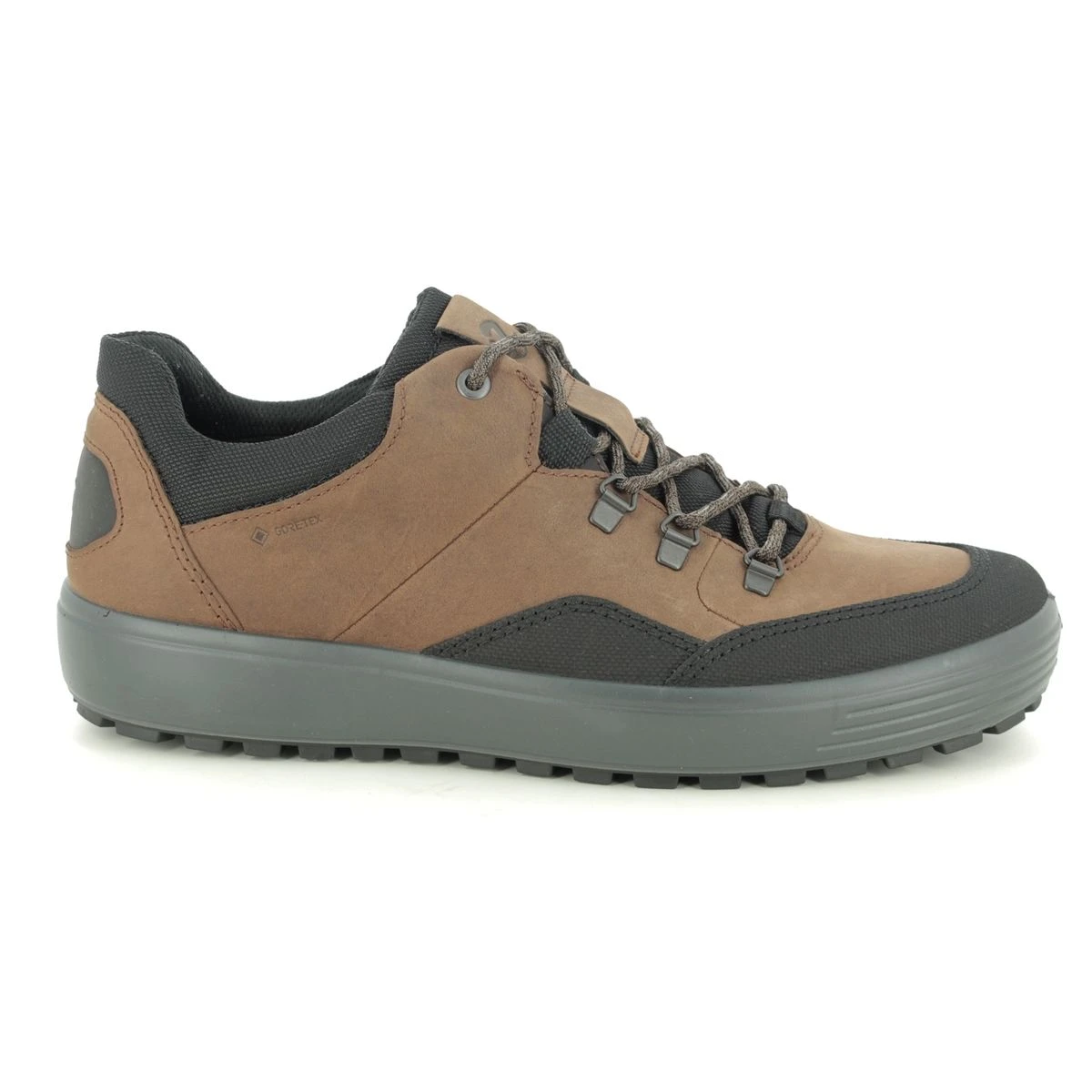 The Ecco 450354-51052 SOFT 7 Mens LO GTX brown Ecco walking shoes feature a full grain Yak leather upper offering improved durability and strength. The mens waterproof shoes feature a breathable Gore Tex membrane designed to keep your feet dry and comfortable whatever the weather. The anatomically shaped footbed provides additional stability and comfort underfoot whilst the polyurethane sole unit is hard wearing and shock absorbent.