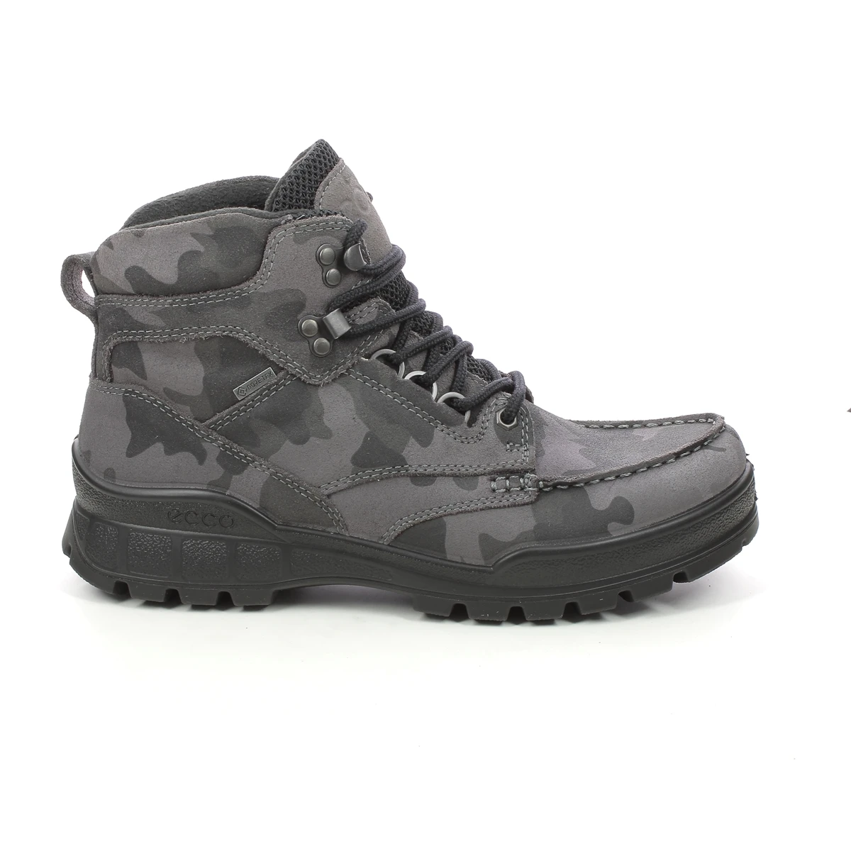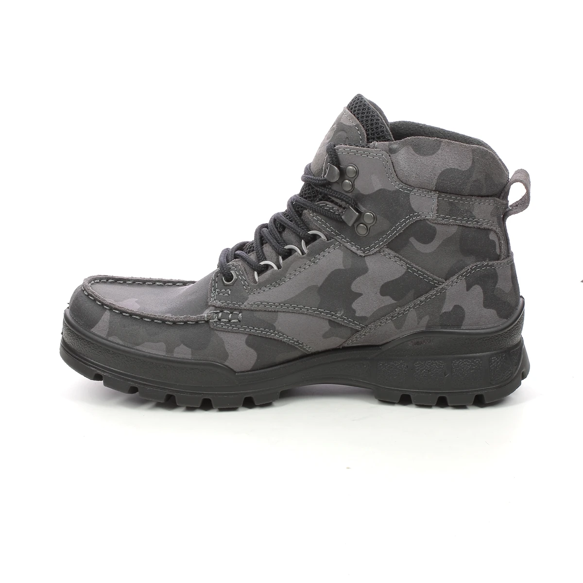 ECCO Track 25 boot in camouflage is a modern take on a classic Ecco style. This is both a rugged outdoor boot and a fashion statement with technical features which are ready for any weather conditions – including its GORETEX lining that is guaranteed to keep your feet dry. The uppers are made of oiled nubuck leather printed with a wintery camouflage for a unique. The is a light and flexible sole unit with fantastic grip on a variety of surfaces.