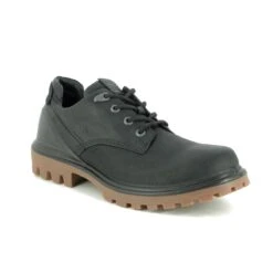 This this season ECCO bring us the Tred Tray Tex 460364-51052 a mens casual shoe in black leather. The plain derby shoe is constructed from a black oiled nubuck giving them a heritage inspired look as well as being waterproof with ECCOs new HM100K waterproof leather technology. The textile lining and leather coasted insole create a comfortable and breathable climate for the feet. The eyelet lacing crates a secure fit for the wearer as well as adding to the style of the shoe. These shoes are made from directly injecting the PU soles making the shoes shock absorbent and cushioned. This process means there is no use of glue or stitching so that the strongest possible bond is achieved delivering unsurpassed durability and longevity. You can buy your ECCO shoes both online and in store with Begg Shoes an official ECCO stockist.