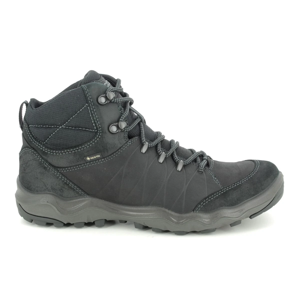 The ECCO 823224-51052 ULTERRA MENS GORE outdoor walking boots are a rugged option for exploring. The black leather upper is made from a durable YAK leather with suede overlay panels and mesh fabric panels for improved durability. The rugged lacing system offers a seucre and adjustable fastening whilst the padded tongue and collar provides a snug fit. The rugged outsole features cleating for improved traction across a variety of terrains whilst the direct PU midsole is lightweight flexible and shock absorbent.