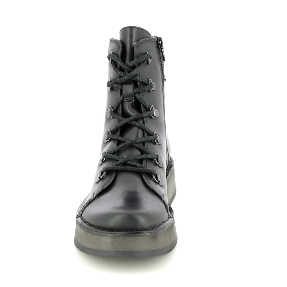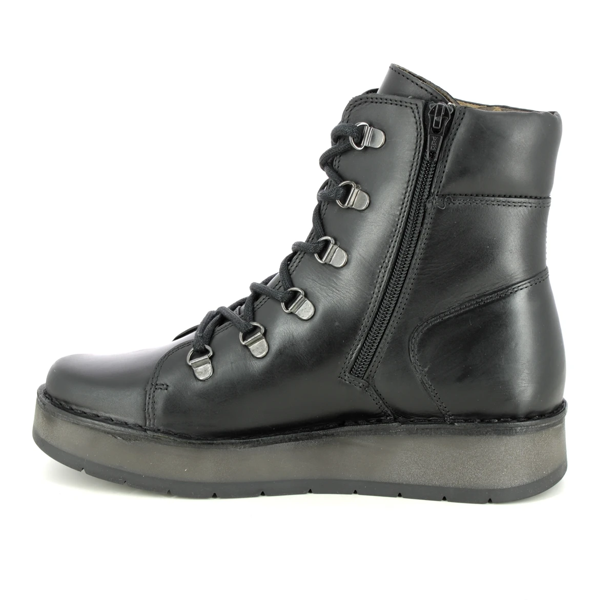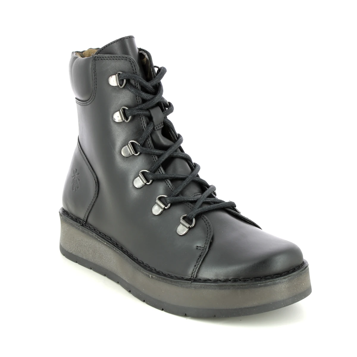 The Fly London Roxy Ravi womens black military boots are bang on trend. These womens lace up boots have a supple leather upper with the Fly London logo embossed on the heel. Pair with a floaty midi dress for an effortless outfit.