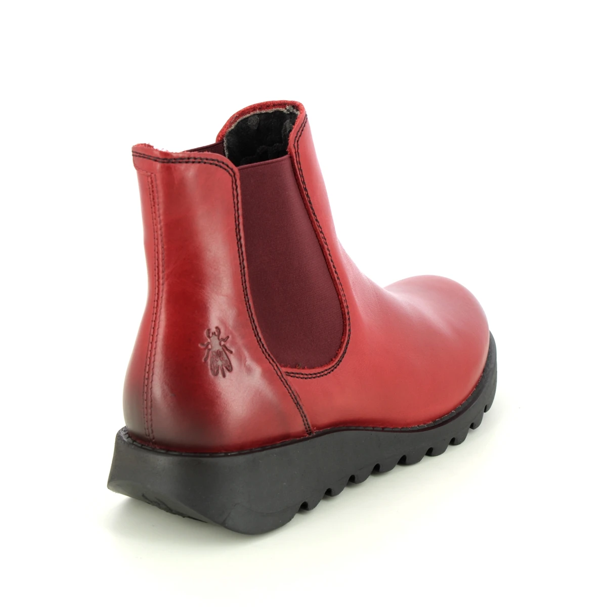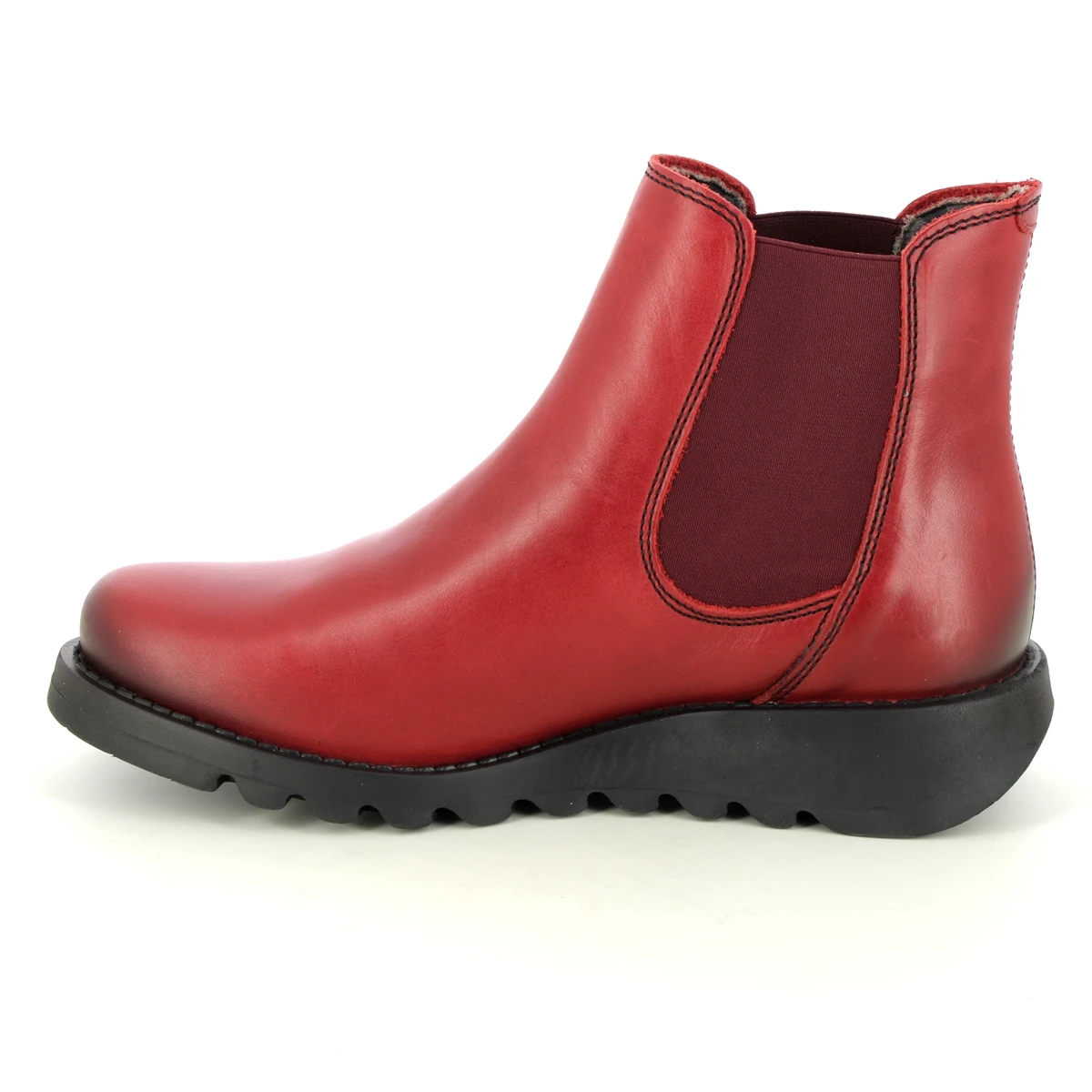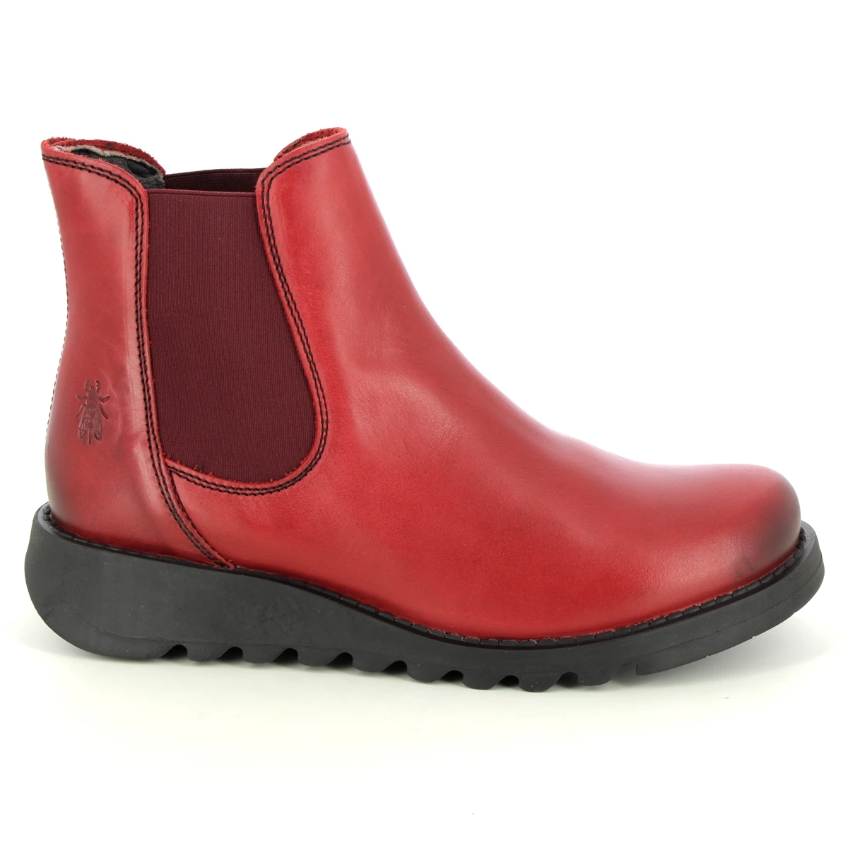 The Fly London Salv women’s red Chelsea boots offer a bright pop of autumnal colour. These women’s bright red ankle boots have an oiled leather upper with elastic side panels and a ridged rubber sole.