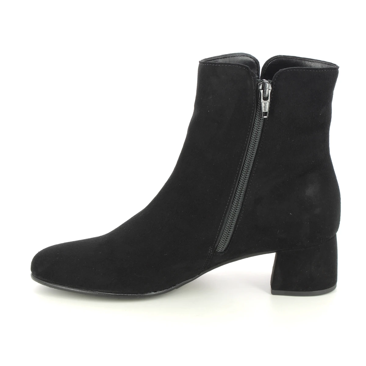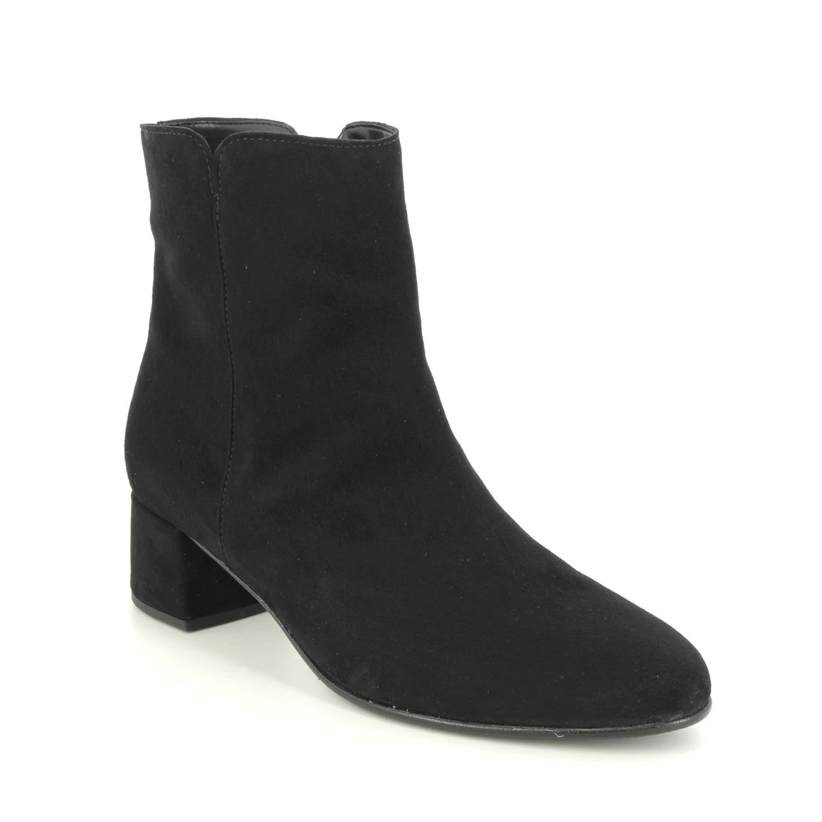 The Gabor Abbey women’s black suede heeled boots are a wardrobe staple. These women’s black ankle boots have an all suede upper and covered 40mm block heel.