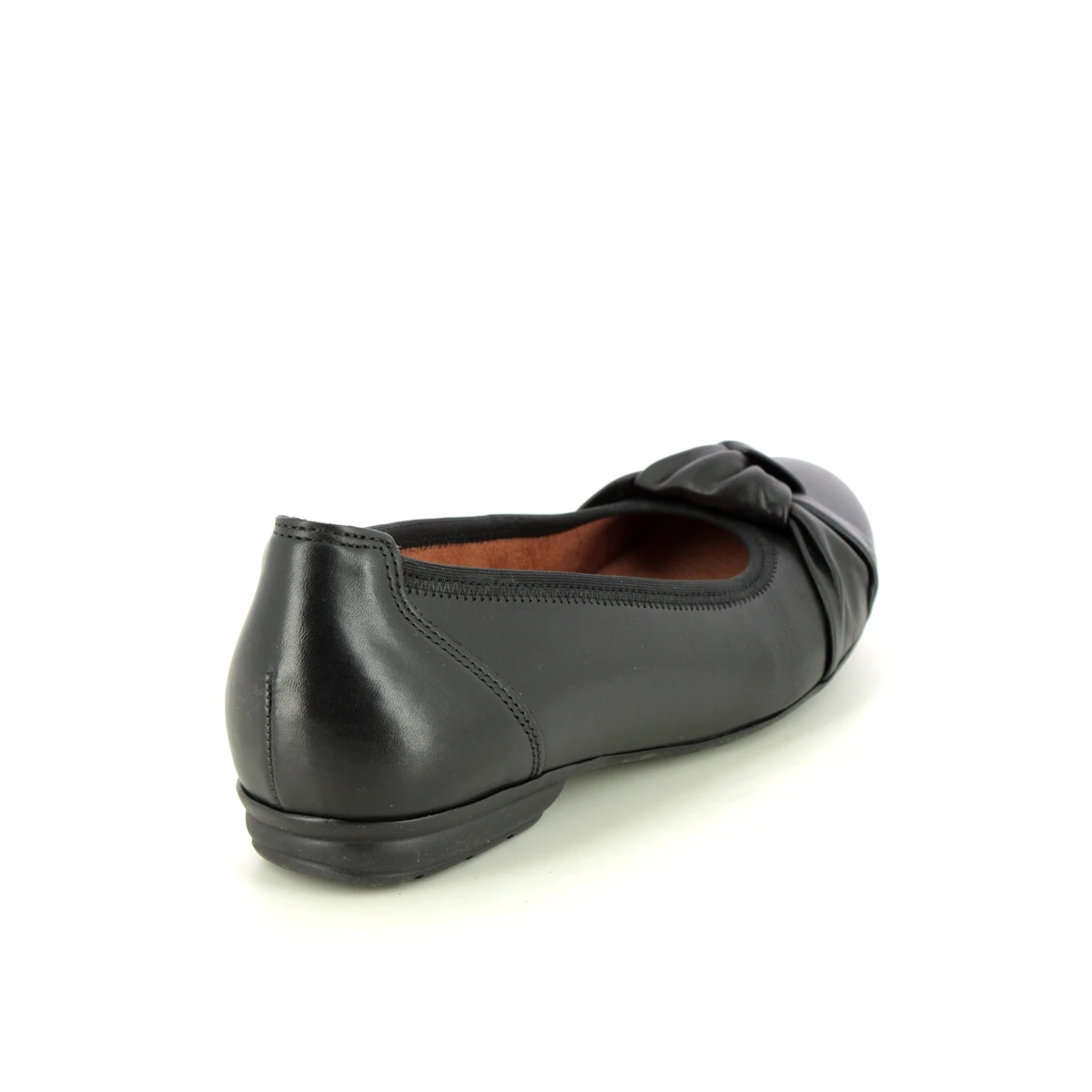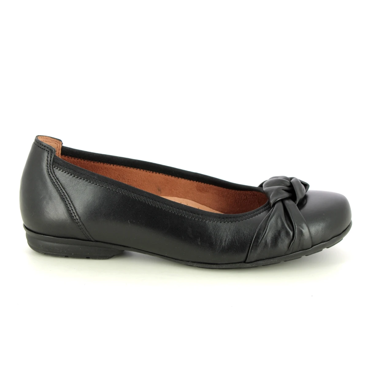 The Gabor Ashlene Claredon womens black pumps are based on the Claredon design. These womens black pumps have a smooth leather upper with a twisted leather bow on the toe.