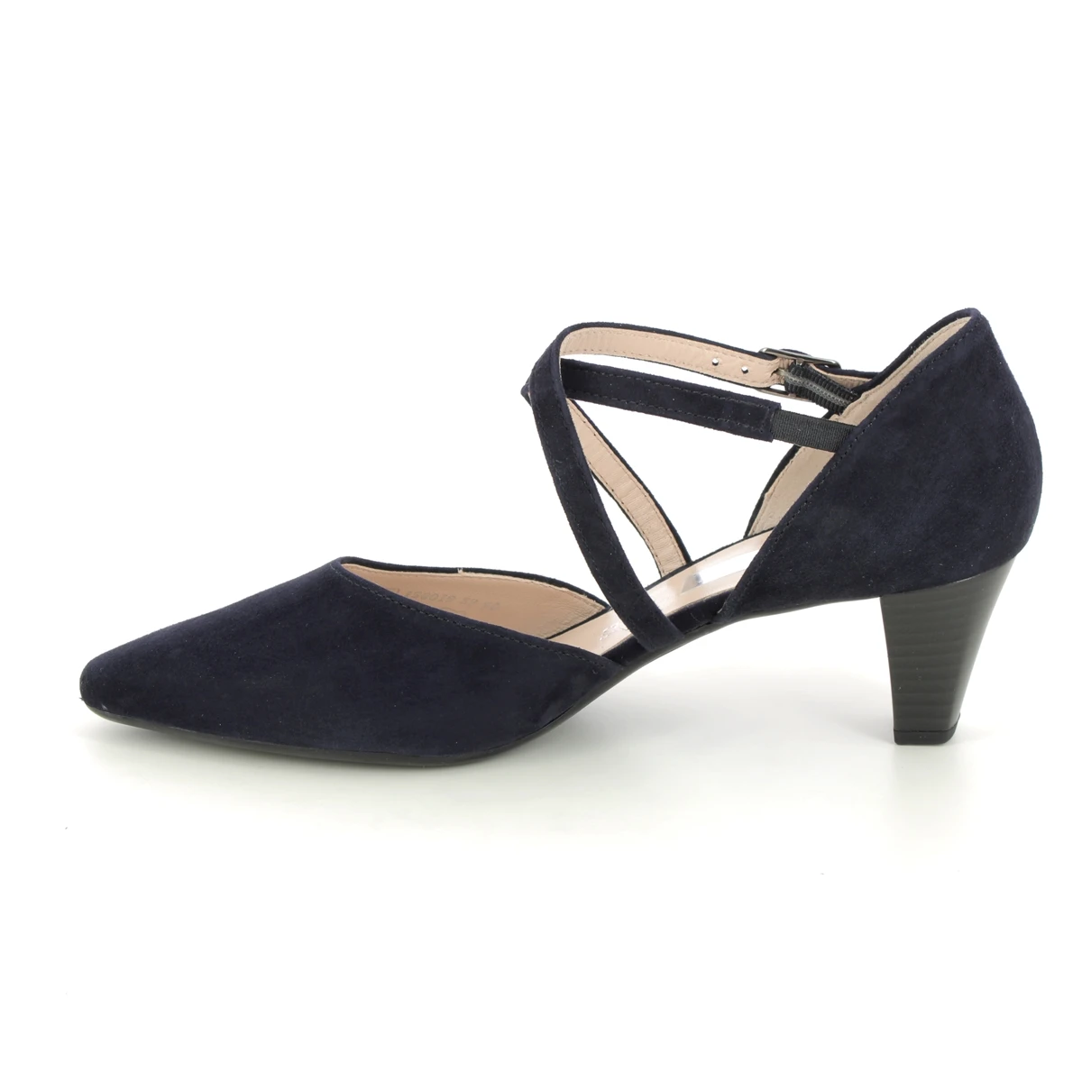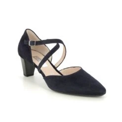 Gabor Callow women’s navy court shoes have a soft suede leather upper with adjustable straps and a tapered heel. These women’s navy wedding shoes are perfect for special occasions and the 50mm heel offers extra height underfoot.