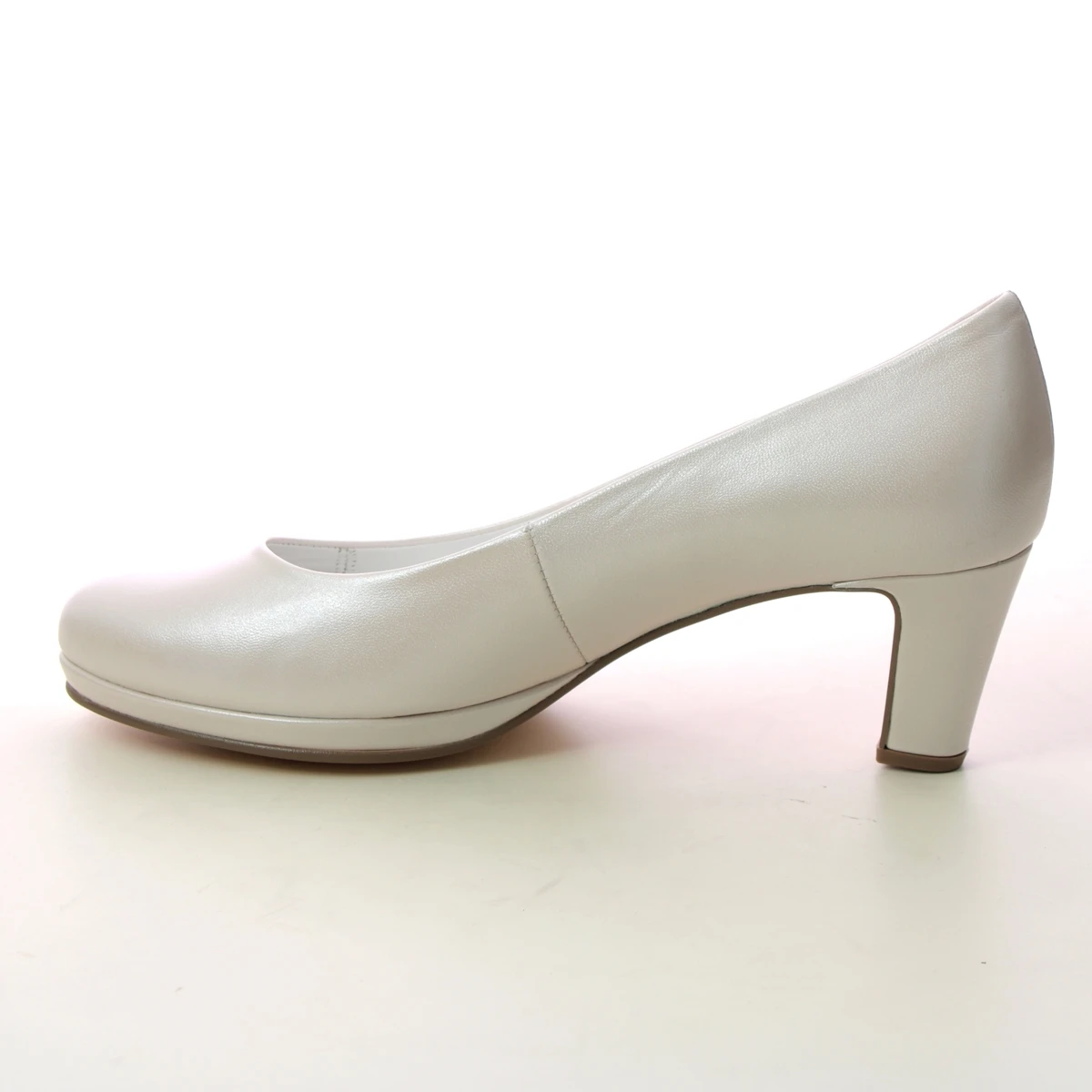 The Gabor Figaro women’s oyster court shoes are neutral and flattering. These women’s heels are ideal for special occasions thanks to the neutral coloured upper in an oyster pearl finish. These Gabor heels have a leather lining to help absorb any excess moisture, keeping feet cool and comfortable. The covered heel measures just 60mm for a extra height without compromising on comfort.