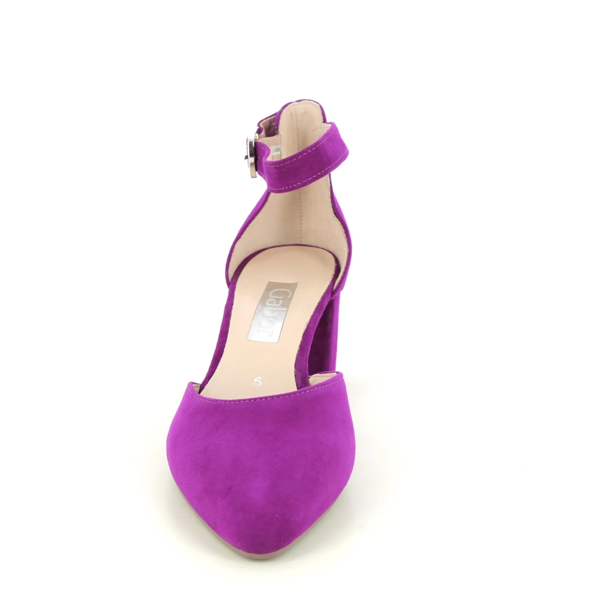 Gabor Gala women’s fuchsia court shoes are flattering and comfortable. These women’s fuchsia wedding shoes have a soft suede leather upper with a tapered covered toe and block heel measuring 55mm. The adjustable ankle strap offers a secure fastening whilst the leather lining and footbed ensures superb comfort underfoot.