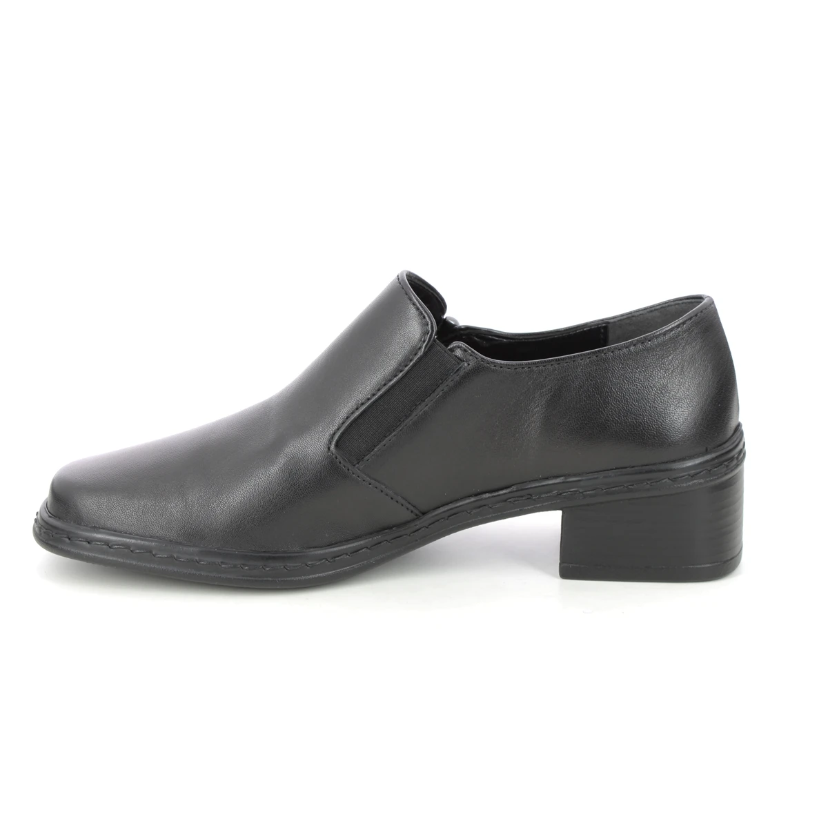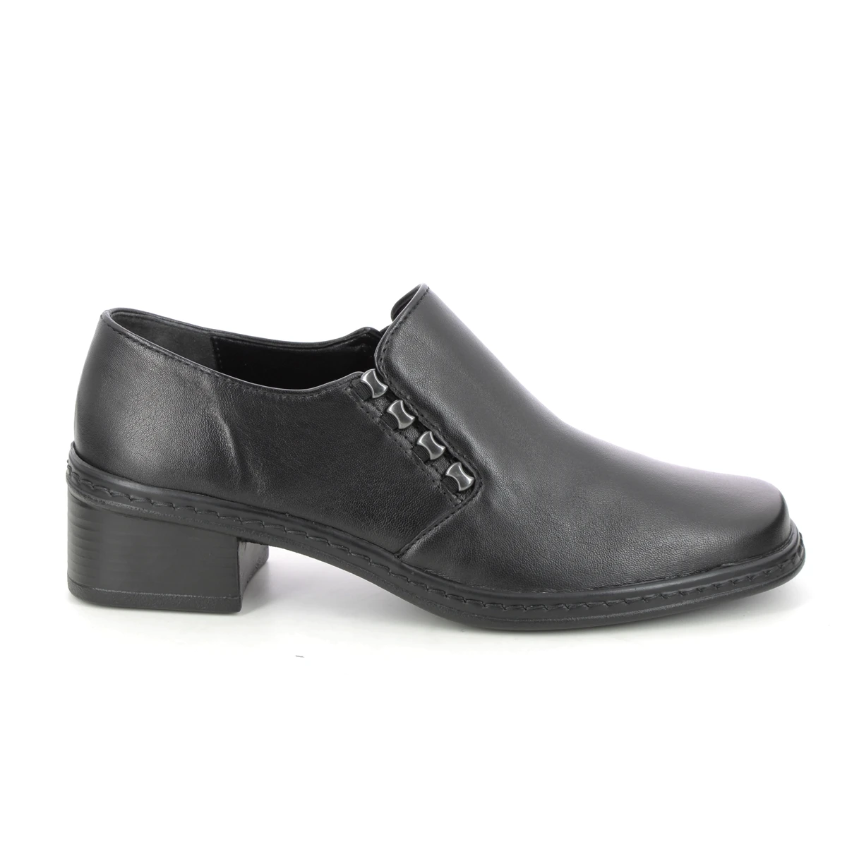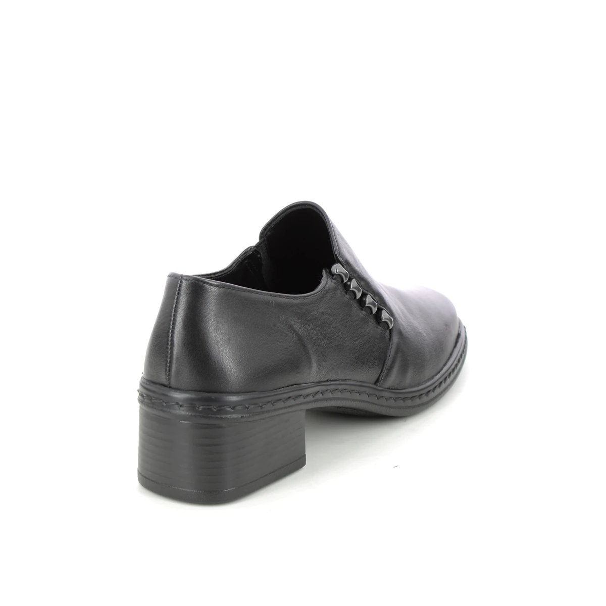 Gabor Hertha Dots women’s black leather slip on shoes provide comfort and support. These women’s shoe boots have a leather upper with a ruched vamp and elastic panels for easy slip on fit. The block heel measures 45mm and the low profile of these shoes would suit trousers.