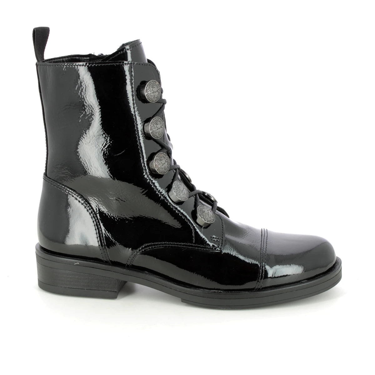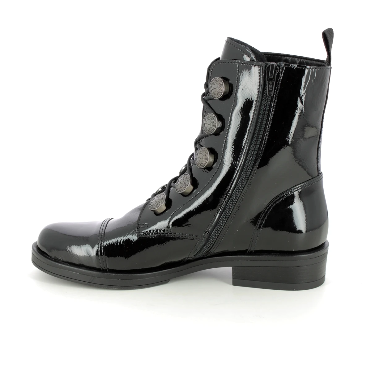 Gabor Lady Button womens black patent boots are bang on trend. These womens lacing boots have metallic studs on the front whilst the interior side zip allows a swift fastening.