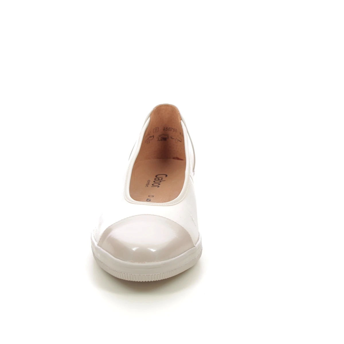 Gabor Petunia women’s beige leather pumps are versatile and comfy. These women’s neutral flats have a smooth leather upper with a shiny patent toe cap and heel back. The low wedge heel offers additional support underfoot whilst the padded footbed ensures comfort with every step.