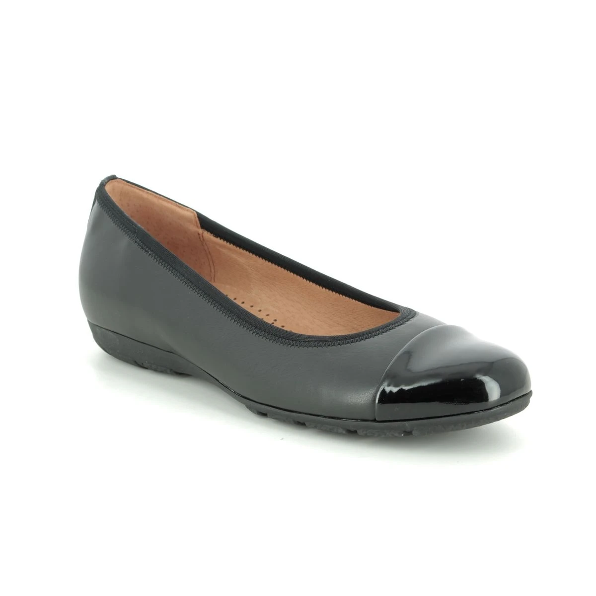 Gabor brings us 74.161.57 Raspa for the Autumn-Winter. These stylish ladies pumps in black patent are perfect for a workwear wardrobe offering comfort and style. The use of Gabors Hovercraft technology makes these ladies pumps a joy to wear as they cradle your feet. The upper paired with the patent toe cap helps to elongate the legs by drawing attention to the toes while the elasticated trim around the edge keeps them secure to your feet.