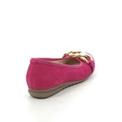 The Gabor Sabia women’s navy pumps are versatile and comfy. These women’s navy ballerinas have a soft suede upper with contrasting gold and navy buckle design over the toe. With a padded footbed and grooved outsole, these Gabor pumps offer excellent support underfoot.