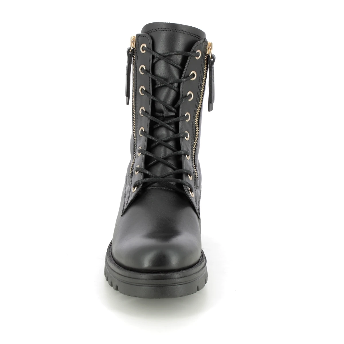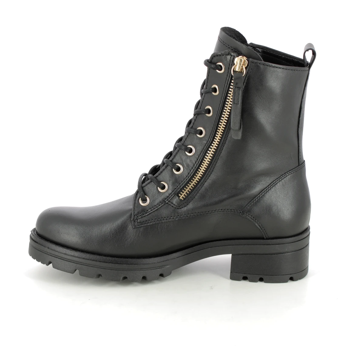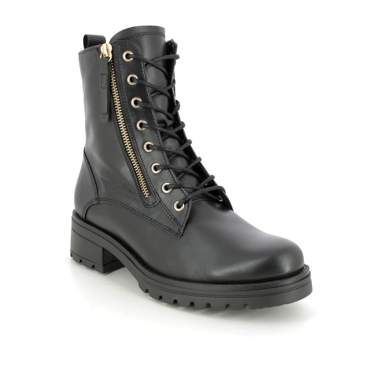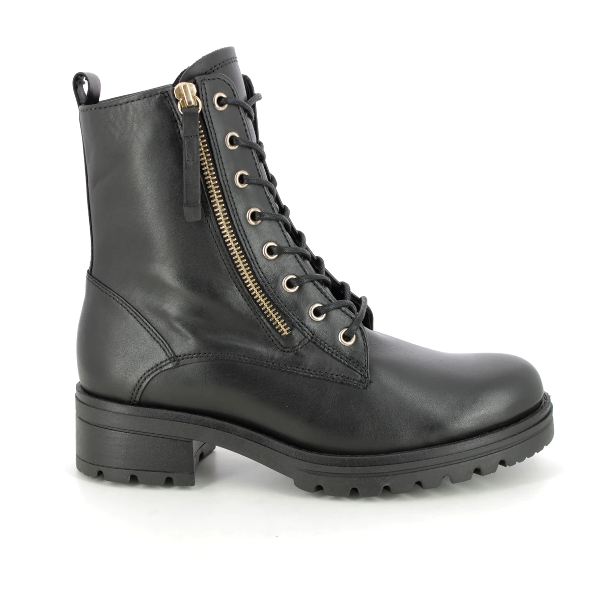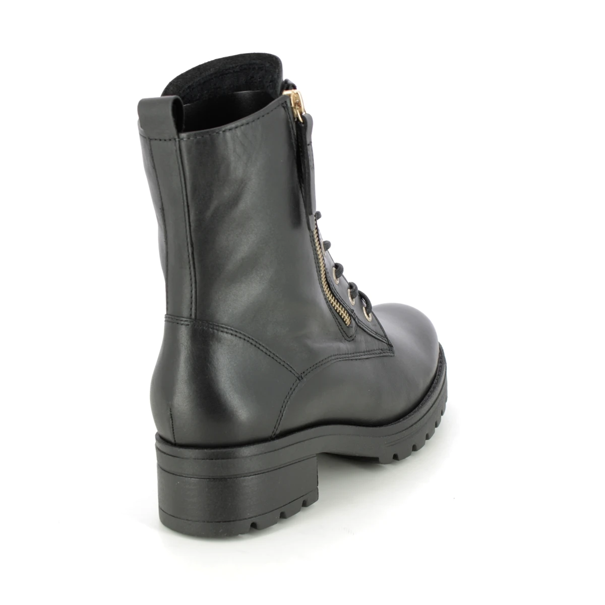The Gabor Serve womens black lace up boots are contemporary and versatile. These womens black biker boots have a full leather upper with lace and double zip fastening. Gabor have used their Optifit comfort technology to bring you the best fit possible whilst the removable insole allows extra space for your own insoles if required.
