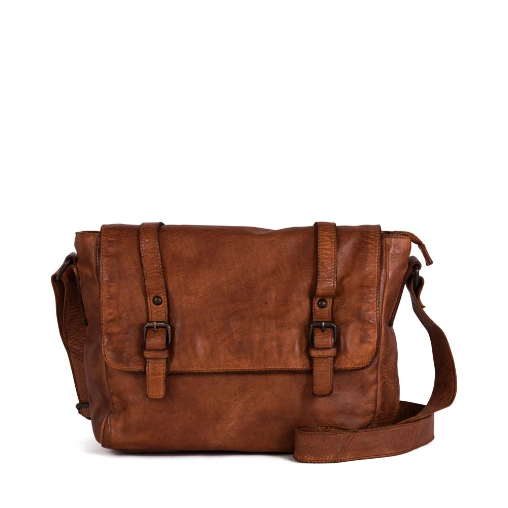 Dimensions: 28 x 11 x 24cm. This luxury tan leather satchel bag has an fixed adjustable strap with brass slider along with a zip closure for the main compartment under flap over.