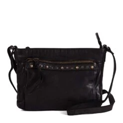 Dimensions: 24 x 3 x 17cm. This luxury black leather crossbody bag has an long fixed adjustable strap, along with a zip closure for the main compartment and a front zip compartment.
