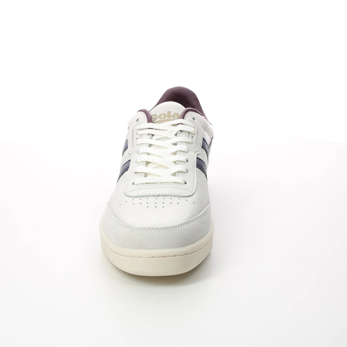 Gola Contact Leather mens white leather trainers have perforations for increased airflow along with full laces for a secure and adjustable fastening.
