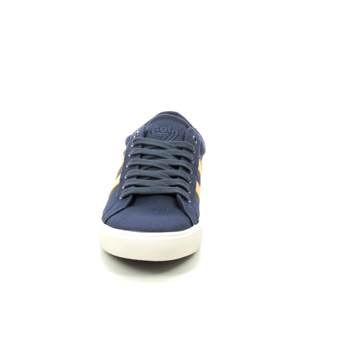 Gola Varsity men’s navy trainers are retro-inspired. These men’s navy sneakers have a canvas upper with bright yellow side stripes and the Gola branding. The full lace up front ensures a secure fastening while the white galvanised rubber outsole maintains the sporty look.