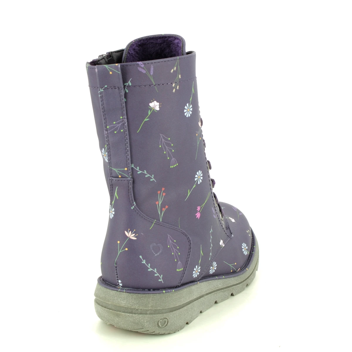 Heavenly Feet Martina 3 Walker women’s purple lace up boots have a gorgeous floral pattern. These women’s purple ankle boots have a pretty wildflower pattern on the man-made upper with access achieved by the interior side zip and lace up front.