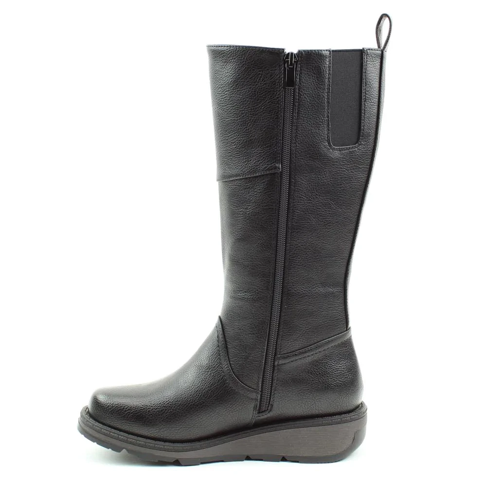 Heavenly Feet Robyn 3 women’s black knee high boots are a stylish option for the colder months. These women’s black long boots are Vegan friendly thanks to the man-made upper. Foot entry can be accessed via the side zip and there is a comfortable memory foam footbed.